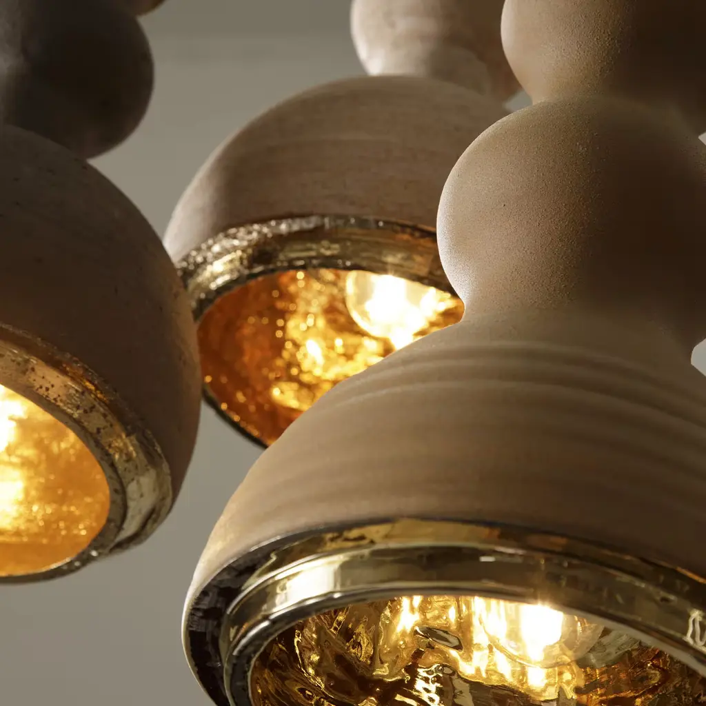 Sinuous curves trace the sculptural silhouette of this pendant lamp, crafted of refractory pink ceramic and showcasing a sandblasted texture distilling authenticity. It boasts a golden internal glaze contrasting with the raw finish and delicate channeled texture enhancing its dynamic curves. Please explore the Artemest catalog for more designs from the Allegra Collection.
