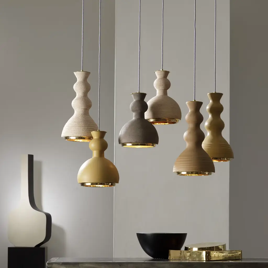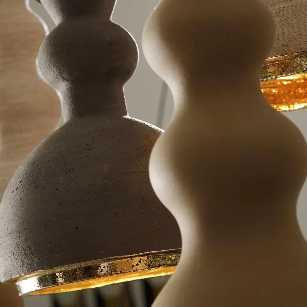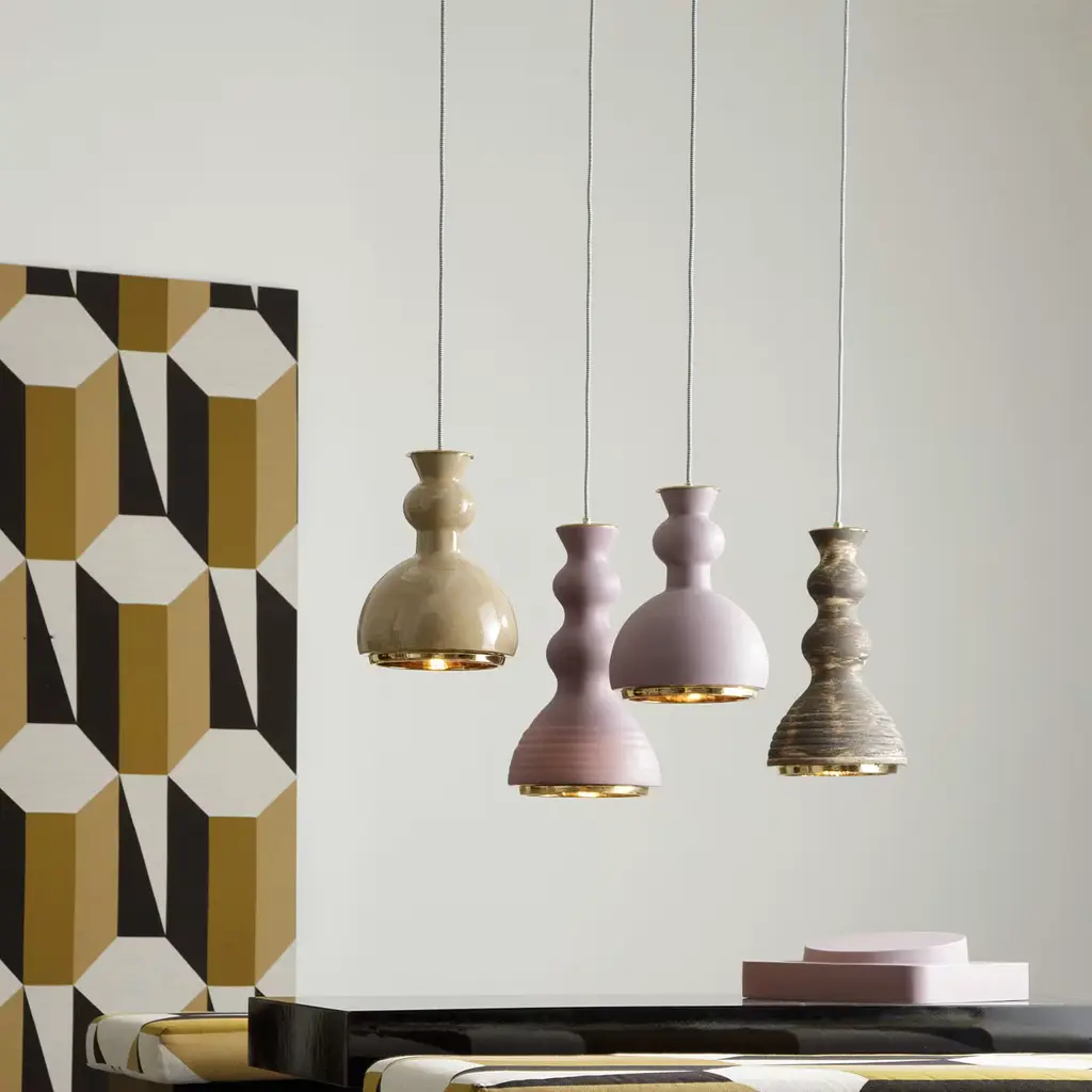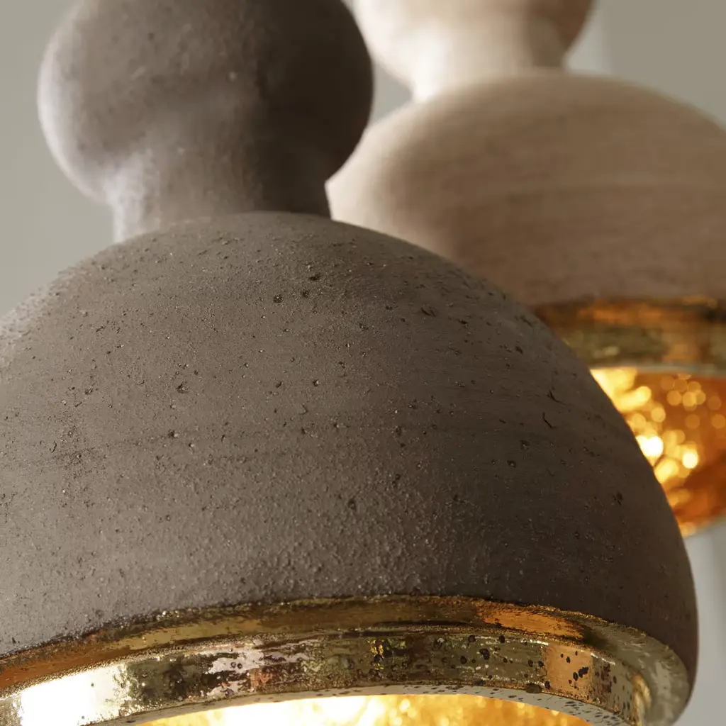 Part of the Allegra Collection, this pendant lamp offers a refractory dark ceramic piece to admire in its effortless and unadorned beauty, rich in flaws and unique. A luminous golden finish accents the interior, capturing the eye together with the generous curves tracing its silhouette, dome-like shade included. Please explore the Artemest catalog for available table versions.