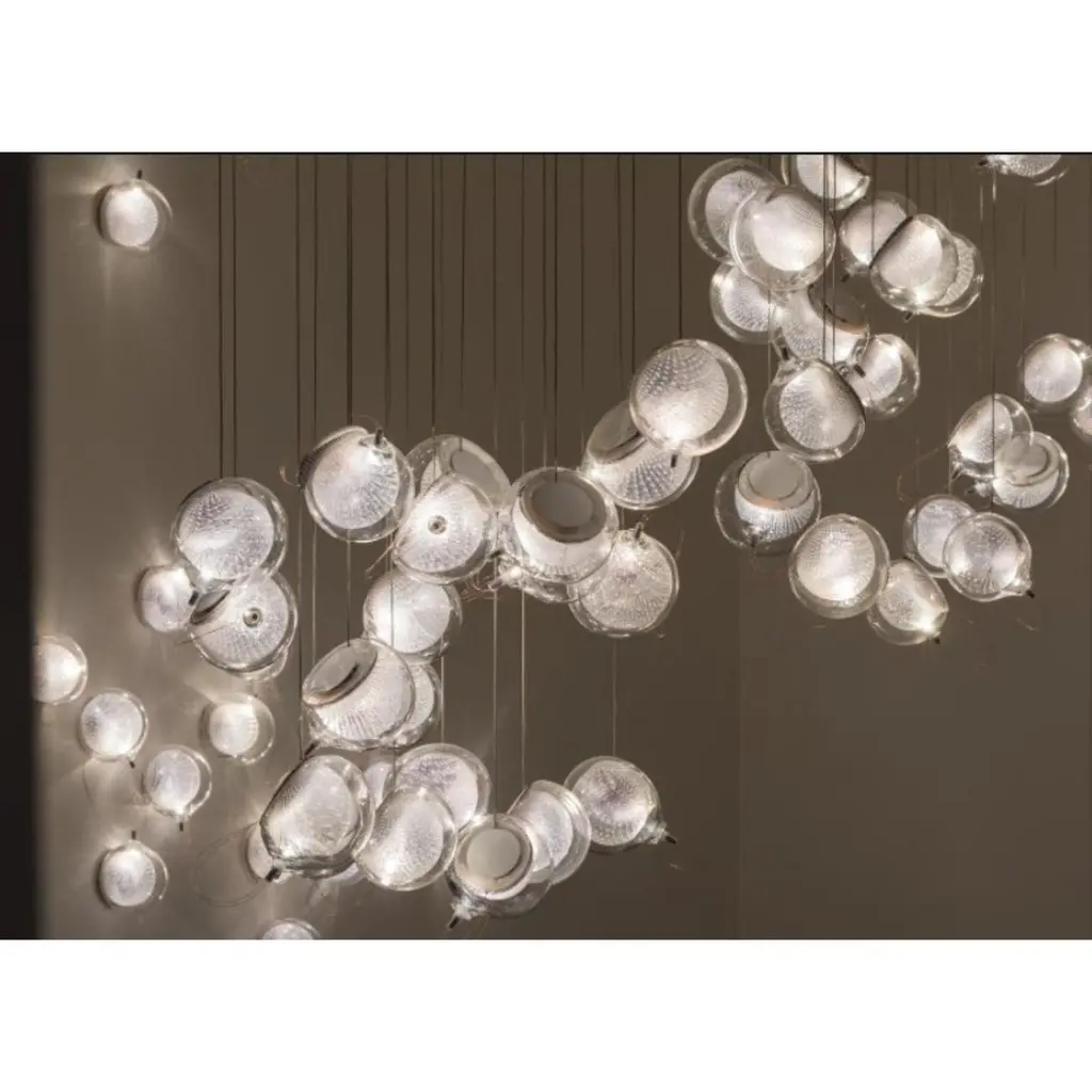 76.14 pendant by BocciDimensions: D 50.8 x H 300 cmMaterials: white powder coated square canopyWeight: 20.9 kgAlso Available in different dimensions.All our lamps can be wired according to each country. If sold to the USA it will be wired for the USA for instance.A vacuum is introduced to a strata composed of hot white and clear glass with copper mesh between; the vacuum causes the white layer to pull away through the embedded mesh, leaving numerous tendrils of white glass suspended within an interstitial space as it goes.Bocci is a design and manufacturing company based in Vancouver and Berlin. Founded in 2005 under the creative directorship of Omer Arbel, Bocci is committed to fostering a lateral and open-ended relationship between creative direction and Craft.The company launched with one lighting design, ‘14’, which became an instant Classic and remains a design staple and bestseller. Bocci’s growing portfolio of sculptural lighting is developed, engineered and fabricated in-house, through an infrastructure calibrated to provide full control over technique, quality and scale.In 2015, Bocci transformed a historic Berlin building into a showroom and archive. ‘Bocci 79’ inhabited a 2,200 m² / 23,600 sq. ft. former courthouse, constructed in 1896, and showcased over a decade of works by Omer Arbel, ranging from pieces in progress, prototypes and ideas, to the complete range of catalogue pieces developed for Bocci.