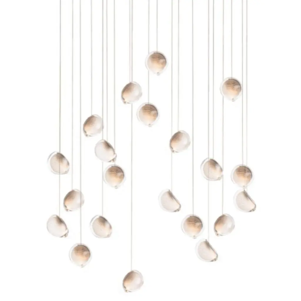 76.26 Pendant by BocciDimensions: D 100 x W 33.5 x H 300 cmMaterials: white powder coated square canopyWeight: 28.2 kgAlso available in different dimensions.All our lamps can be wired according to each country. If sold to the USA it will be wired for the USA for instance.A vacuum is introduced to a strata composed of hot white and clear glass with copper mesh between; the vacuum causes the white layer to pull away through the embedded mesh, leaving numerous tendrils of white glass suspended within an interstitial space as it goes.Bocci is a design and manufacturing company based in Vancouver and Berlin. Founded in 2005 under the creative directorship of Omer Arbel, Bocci is committed to fostering a lateral and open-ended relationship between creative direction and craft. The company launched with one lighting design, ‘14’, which became an instant classic and remains a design staple and bestseller. Bocci’s growing portfolio of sculptural lighting is developed, engineered and fabricated in-house, through an infrastructure calibrated to provide full control over technique, quality and scale.In 2015, Bocci transformed a historic Berlin building into a showroom and archive. ‘Bocci 79’ inhabited a 2,200 m² / 23,600 sq ft former courthouse, constructed in 1896, and showcased over a decade of works by Omer Arbel, ranging from pieces in progress, prototypes and ideas, to the complete range of catalogue pieces developed for Bocci.