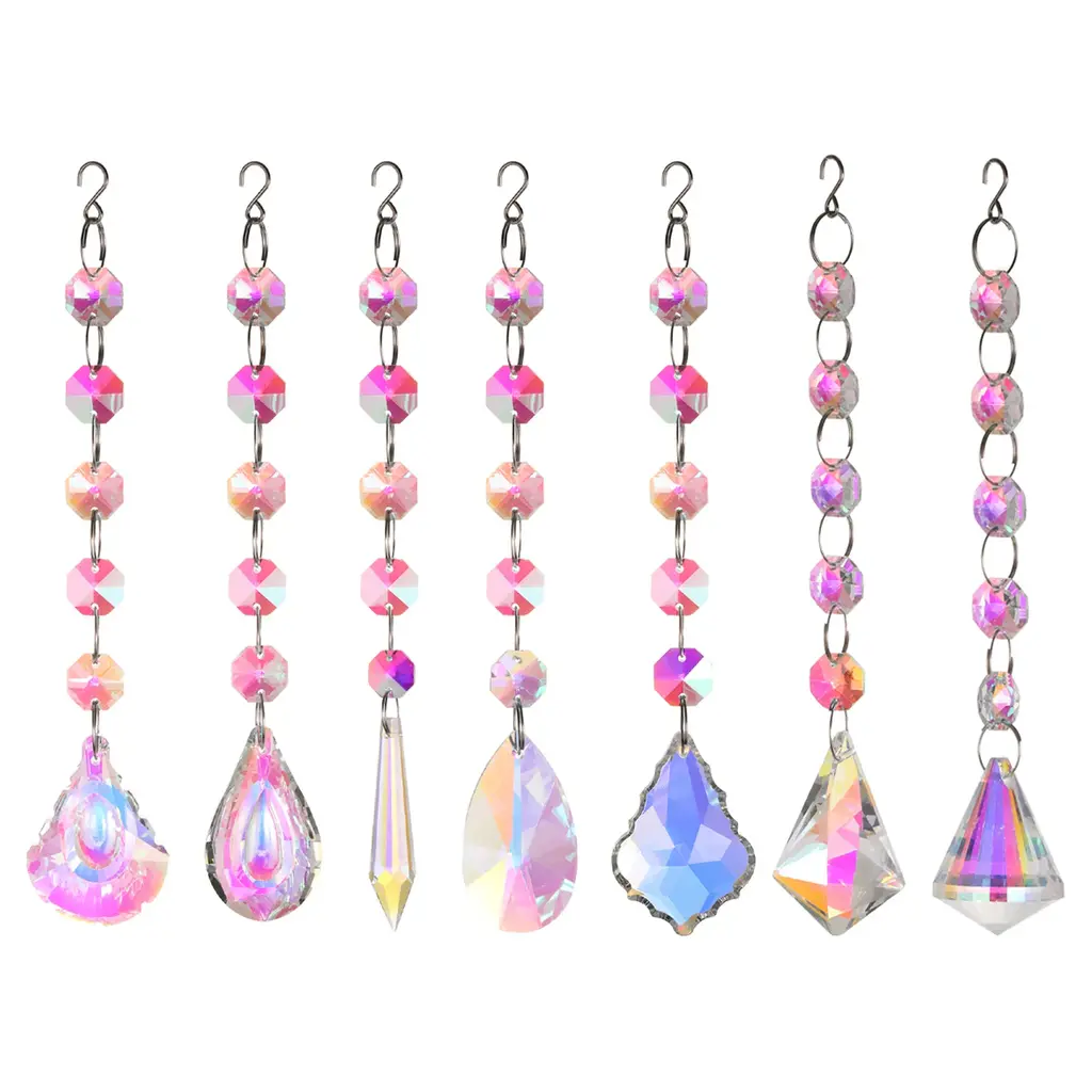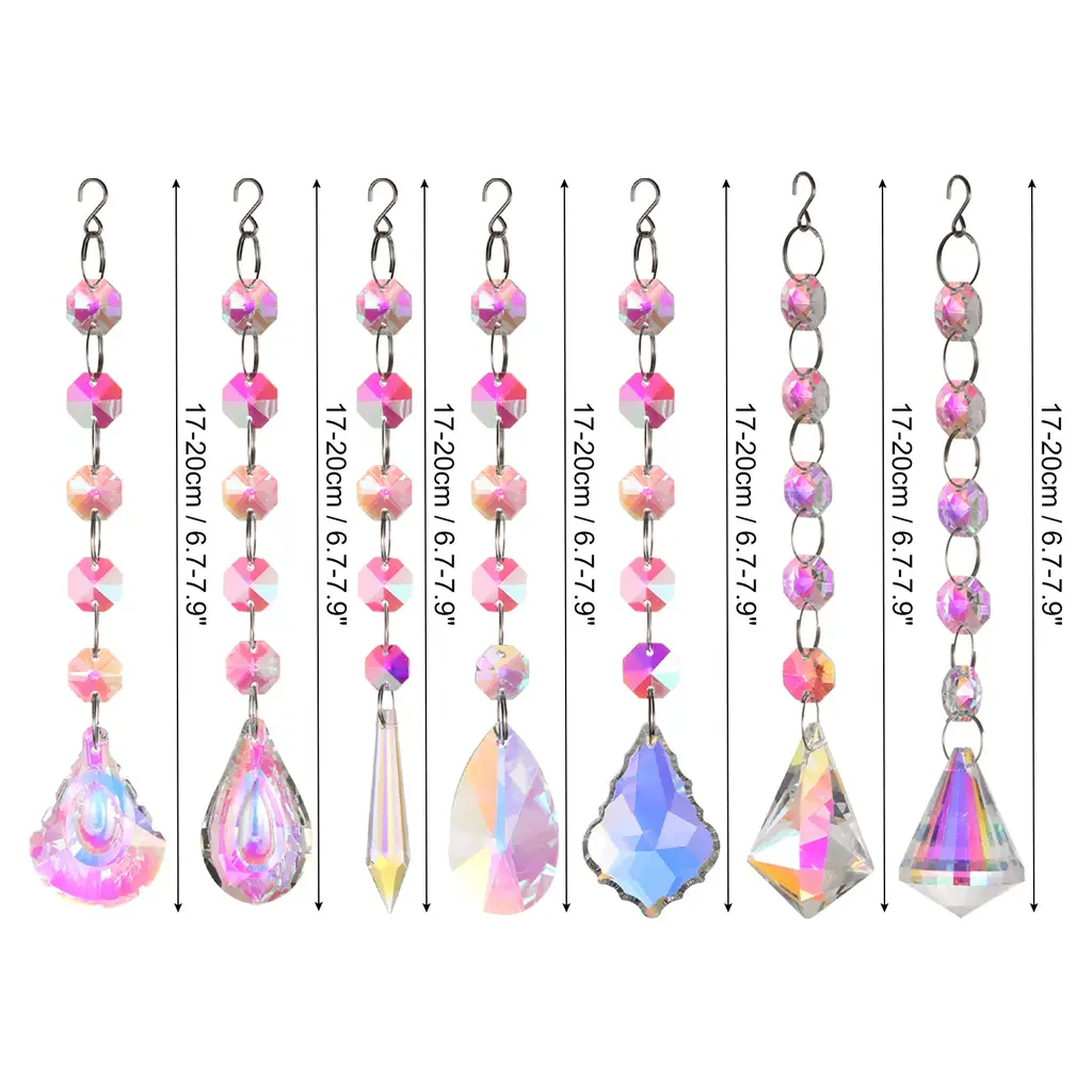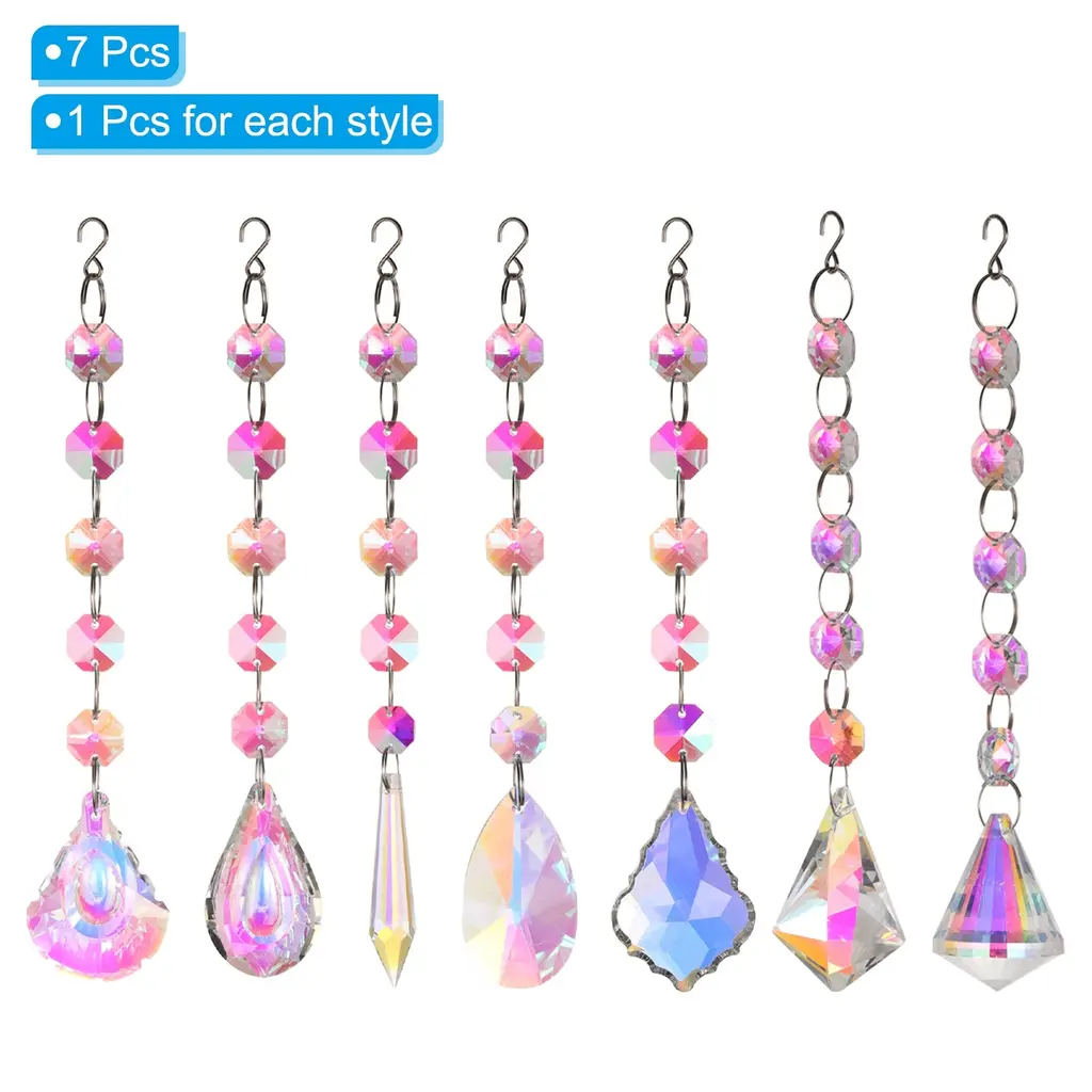 The prism suncatcher is widely used for indoor and outdoor decorations to enhance the aesthetics and ambiance of a room or outdoor space. They are often hung in window, walls, chandeliers, balconies, porches, gardens, yards and other locations to capture sunlight and create beautiful light and shadow effects. It's a great gift for friends and family.SpecificationMaterial: CrystalLength: 17-20cm / 6.7-7.9 inchPacking List: 7Pcs x Hanging Crystals Sun CatchersAdvantageThe hanging suncatcher is made of crystal material and has a sparkling appearance with surfaces cut into prisms. They reflect colorful light and projections when exposed to sunlight or light, creating enchanting light and shadow effects.InstructionSuncatcher is comprised of octagonal crystal beads and various shaped pendant tails, and they come with hooks for easy hanging in desired locations.NOTE: Please confirm the required style before purchase.