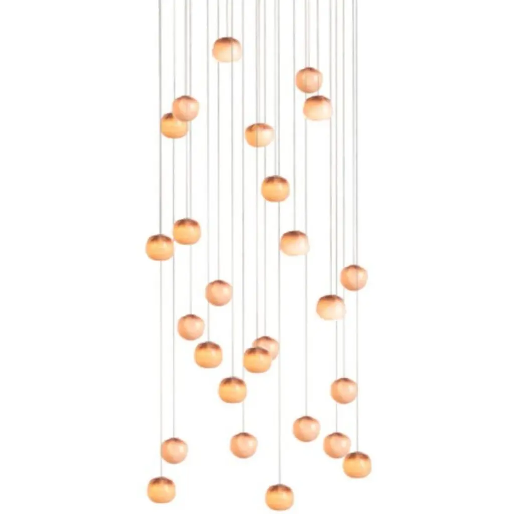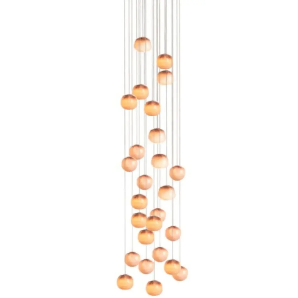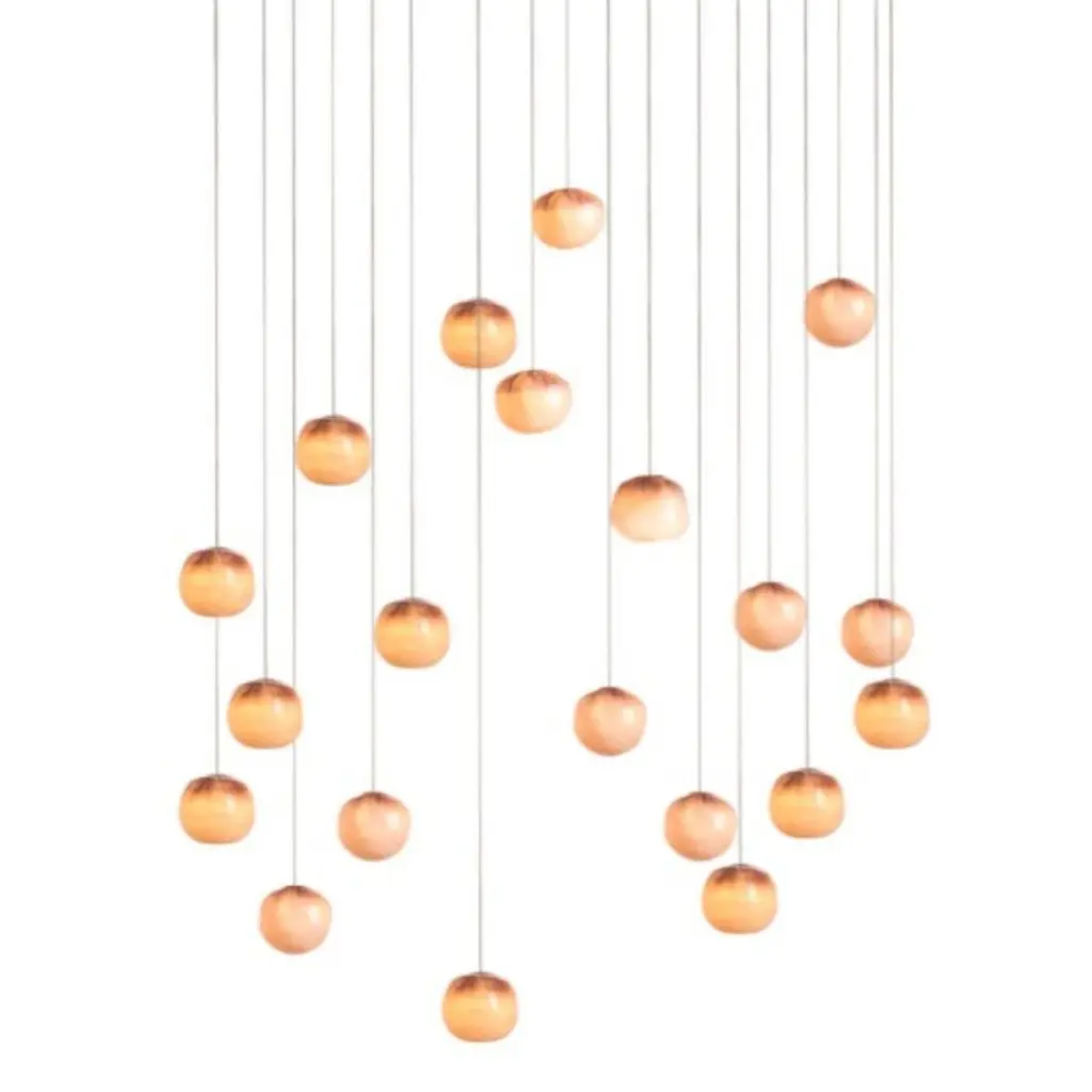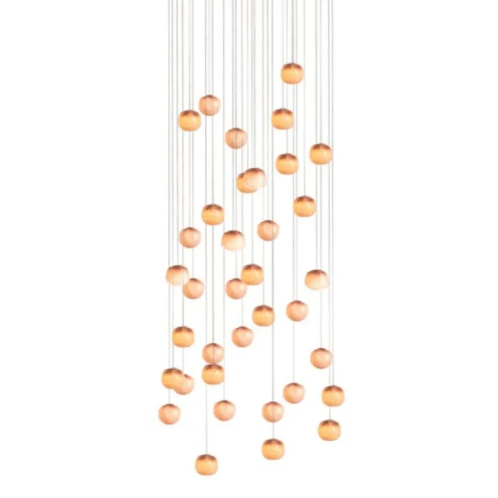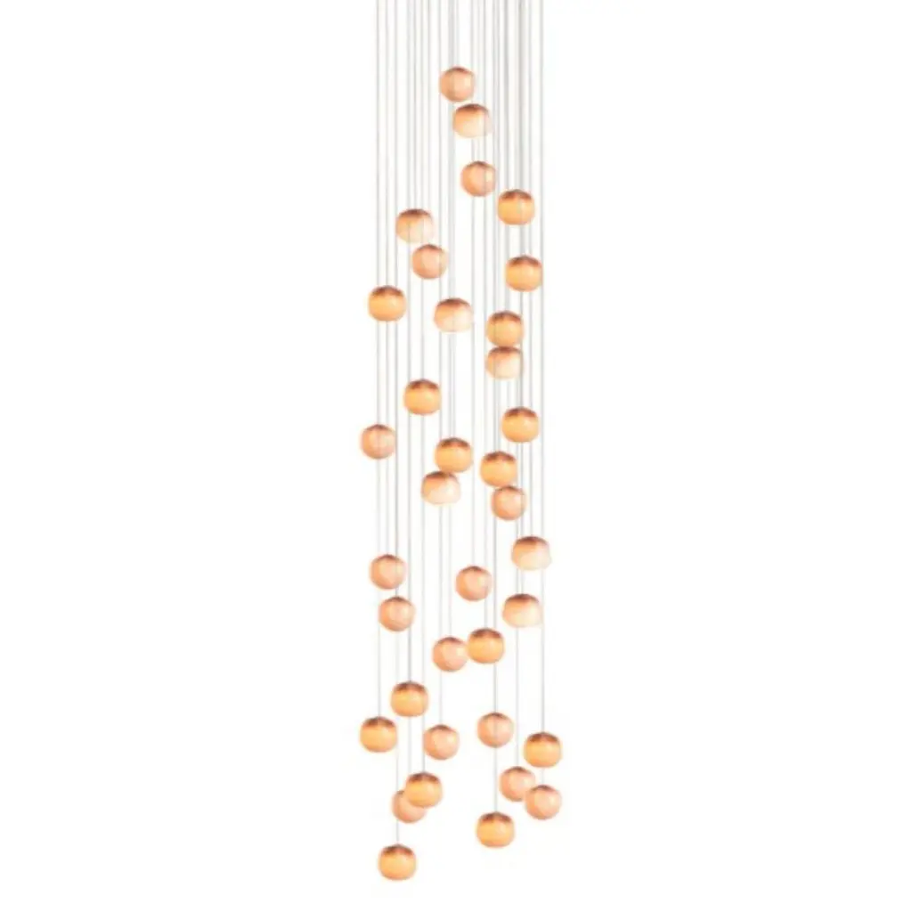 84.11 pendant by BocciDimensions: D 85 x W 28.4 x H 300 cmMaterials: white powder coated square canopyWeight: 36.6 kgAlso available in different dimensions.All our lamps can be wired according to each country. If sold to the USA it will be wired for the USA for instance.A white glass moil is captured inside a fine copper mesh basket and then plunged into hot clear glass. Air is blown into the matrix to gently push the white glass through the mesh, creating a delicate pillowed form that is suspended inside the thick outer layer of clear glass. Sometimes the copper mesh basket folds and crinkles, adding specificity to each piece. Undulations in the exterior shape are a natural consequence of the fabrication process and accentuate the gentle white pillowing below. A low-voltage xenon or LED light source is introduced into the piece, casting a warm coppery hue.Bocci is a design and manufacturing company based in Vancouver and Berlin. Founded in 2005 under the creative directorship of Omer Arbel, Bocci is committed to fostering a lateral and open-ended relationship between creative direction and Craft.The company launched with one lighting design, ‘14’, which became an instant Classic and remains a design staple and bestseller. Bocci’s growing portfolio of sculptural lighting is developed, engineered and fabricated in-house, through an infrastructure calibrated to provide full control over technique, quality and scale.In 2015, Bocci transformed a historic Berlin building into a showroom and archive. ‘Bocci 79’ inhabited a 2,200 m² / 23,600 sq. ft. former courthouse, constructed in 1896, and showcased over a decade of works by Omer Arbel, ranging from pieces in progress, prototypes and ideas, to the complete range of catalogue pieces developed for Bocci.