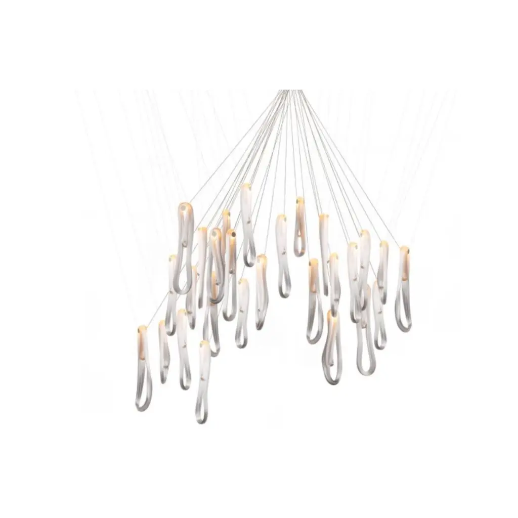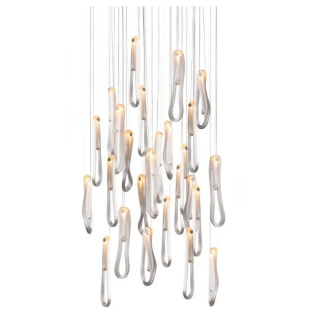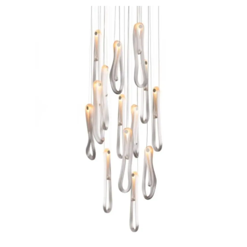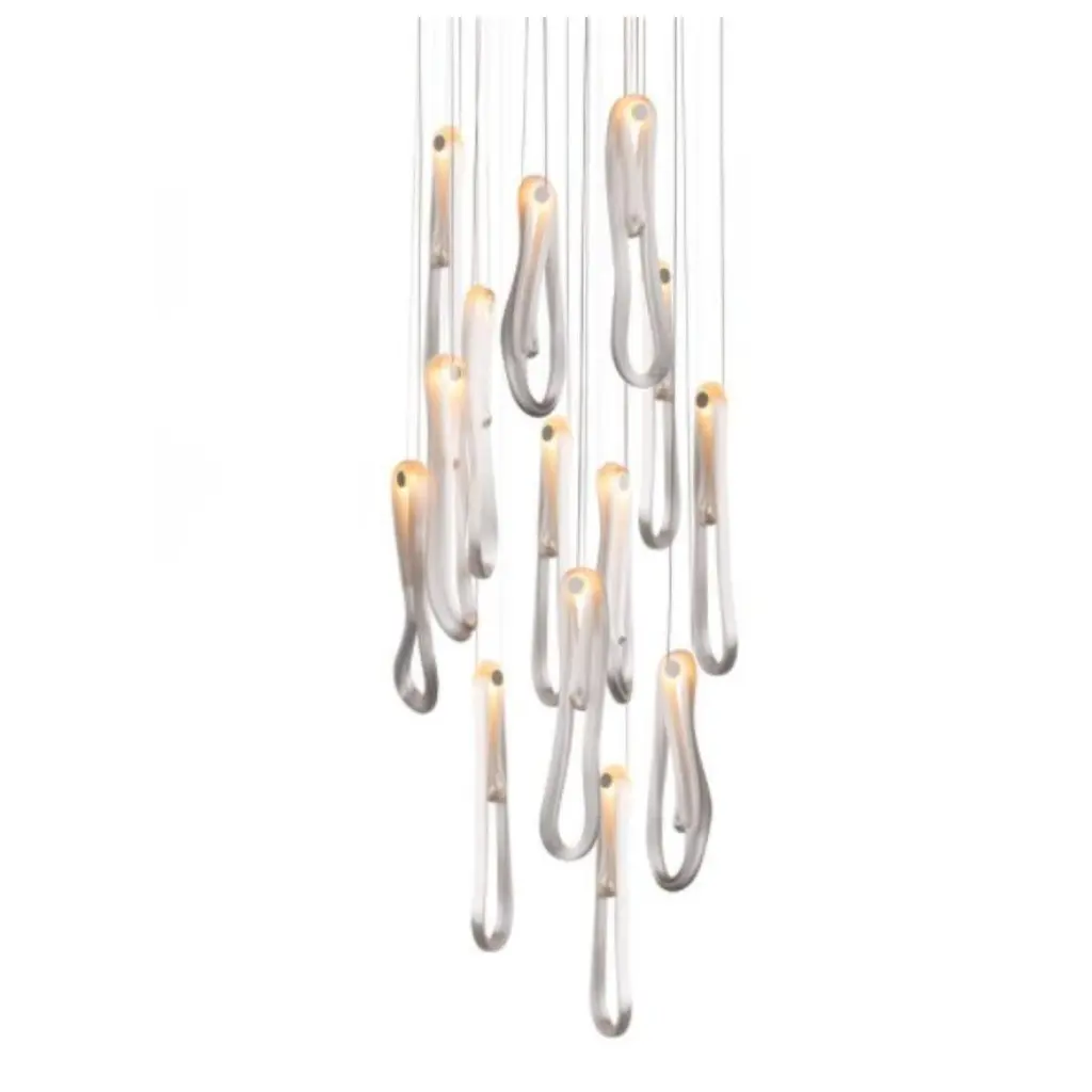 87.36 Pendant by BocciDimensions: D75.5 x W75.5 x H300 cmMaterials: white powder coated rectangular canopyWeight: 68.6 kgAlso Available in different dimensions.All our lamps can be wired according to each country. If sold to the USA it will be wired for the USA for instance.Soda water is used to trap air in a super heated glass matrix, which is vertically stretched and folded back onto itself between pegs numerous times. As the glass cools, the folding motion along the grain of the loop turns the entrapped air into microfilaments that give the piece a pearlescent optical quality. A low-voltage xenon or LED light source is introduced at one end of the loop casting light through the microfilaments and registering a gentle gradient.Bocci is a design and manufacturing company based in Vancouver and Berlin. Founded in 2005 under the creative directorship of Omer Arbel, Bocci is committed to fostering a lateral and open-ended relationship between creative direction and Craft.The company launched with one lighting design, ‘14’, which became an instant Classic and remains a design staple and bestseller. Bocci’s growing portfolio of sculptural lighting is developed, engineered and fabricated in-house, through an infrastructure calibrated to provide full control over technique, quality and scale.In 2015, Bocci transformed a historic Berlin building into a showroom and archive. ‘Bocci 79’ inhabited a 2,200 m² / 23,600 sq. ft. former courthouse, constructed in 1896, and showcased over a decade of works by Omer Arbel, ranging from pieces in progress, prototypes and ideas, to the complete range of catalogue pieces developed for Bocci.