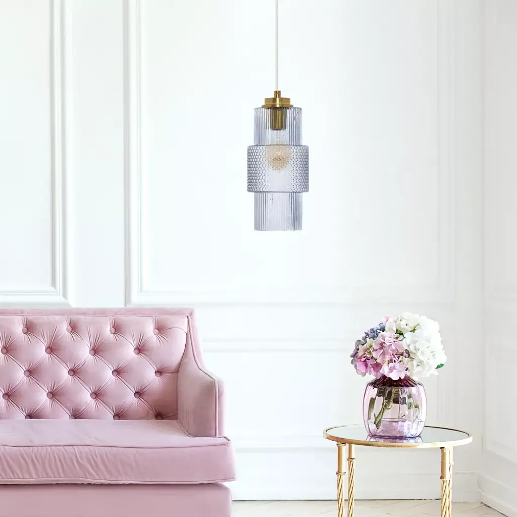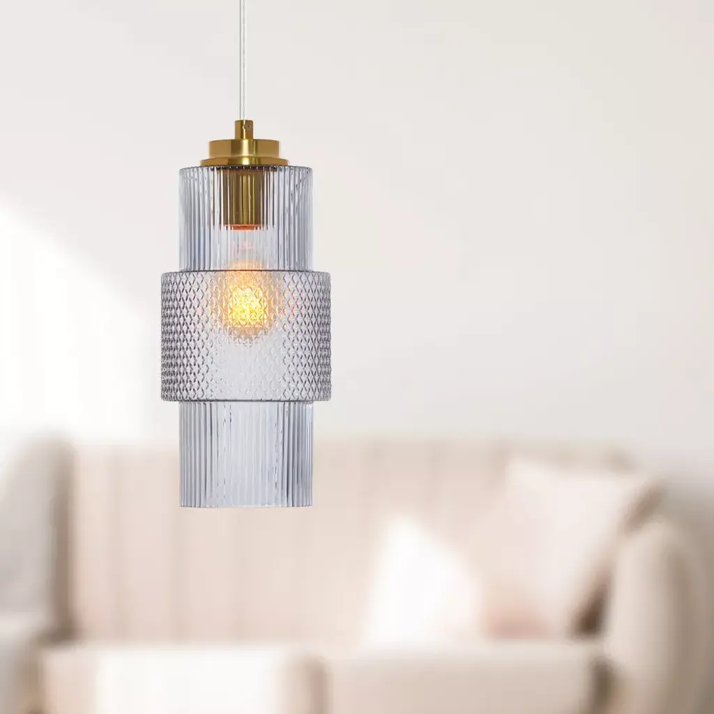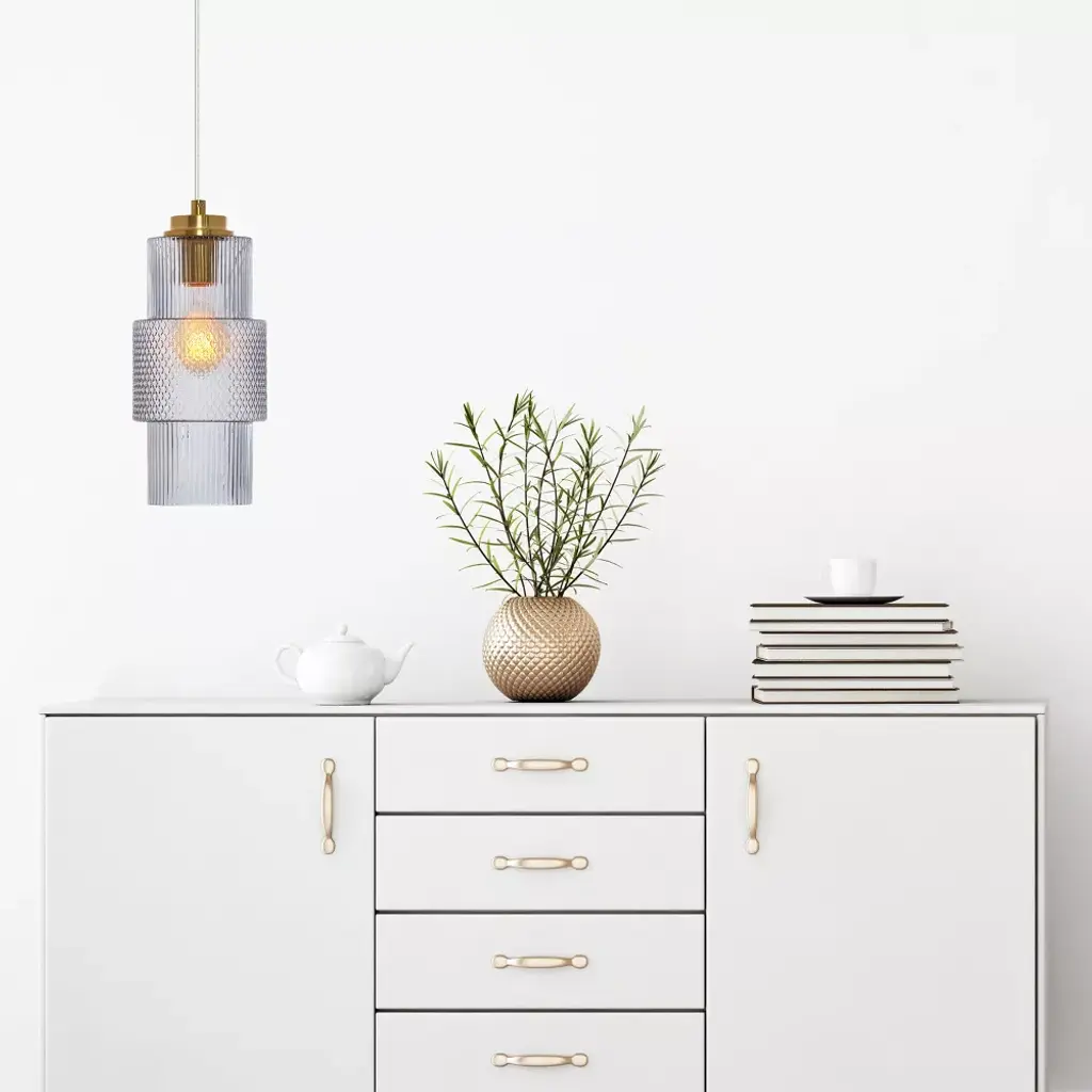 9.75" Noah Pillar Shade Pendant Light Gray - River Of Goods: Brushed Gold-finish, Adjustable Height