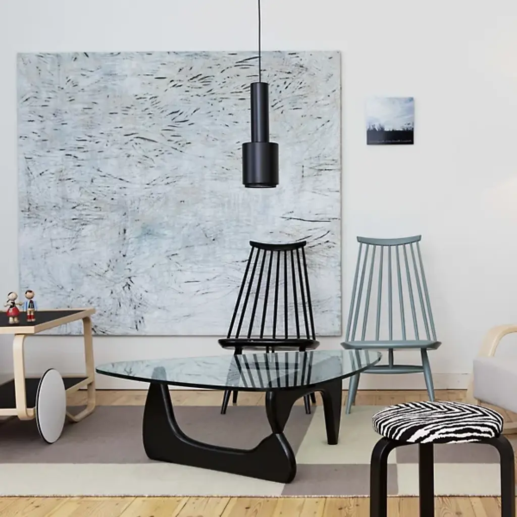 No detail spared. A stunning contemporary look with a purely functional build quality – the A110 Pendant by Artek uses a starkly contrasting finish on different components to offset the brilliant directional light output. The pairing of satin paint in striking, bold paint colors with the brass accent ring at the bottom of the pendant gives a touch of class, while still exuding a calm, understated attitude from the light fixture. A perfect choice in lighter spaces where the fixture needs to be seen but isn't the main design feature.