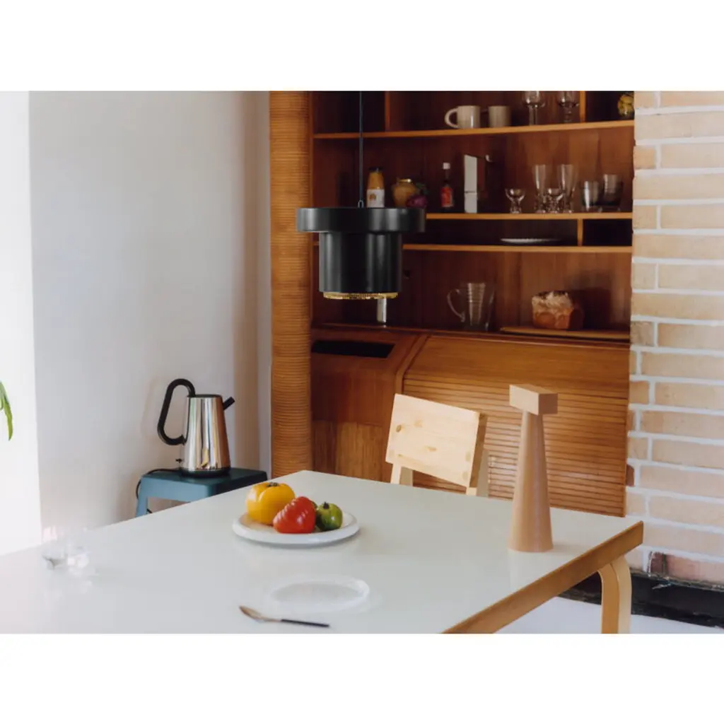 Artek’s A201 is a clean-lined, stylish pendant made up of two steel cylinders and a perforated brass ring. The pendant, designed by Alvar Aalto, reflects light through both the upper and lower parts to create an effect similar to sunlight – in addition to a warm glow, the lamp provides downward illumination. The brass ring adds an elegant finishing touch while also preventing glare. Like many of Alvar Aalto’s lighting designs, A201 was designed for a specific building, namely the Säynätsalo town hall library located in Central Finland. This special black version of the A201 pendant is available exclusively from Finnish Design Shop and Artek.