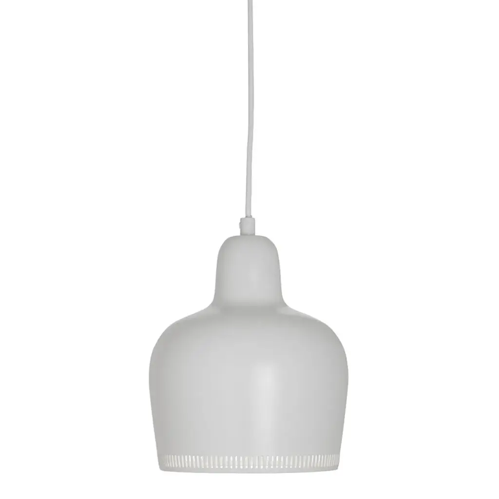 Nicknamed "Golden Bell," Pendant Light A330S has a sculptural quality that can be appreciated whether the light is switched on or off. Casting golden reflections, the perforated rim of Pendant Light A330S creates a memorable corona effect and prevents glare. Made from a single piece of brass or steel, the elegant "Golden Bell" was created by Aino and Alvar Aalto for the interior of The Savoy Restaurant, Helsinki in 1937 and went on to be shown in the Finnish Pavilion of the Paris World Expo the same year. The "Golden Bell" embodies Alvar Aalto's signature streamlined aesthetic, while the light it provides is both warm-toned and characteristically diffuse.