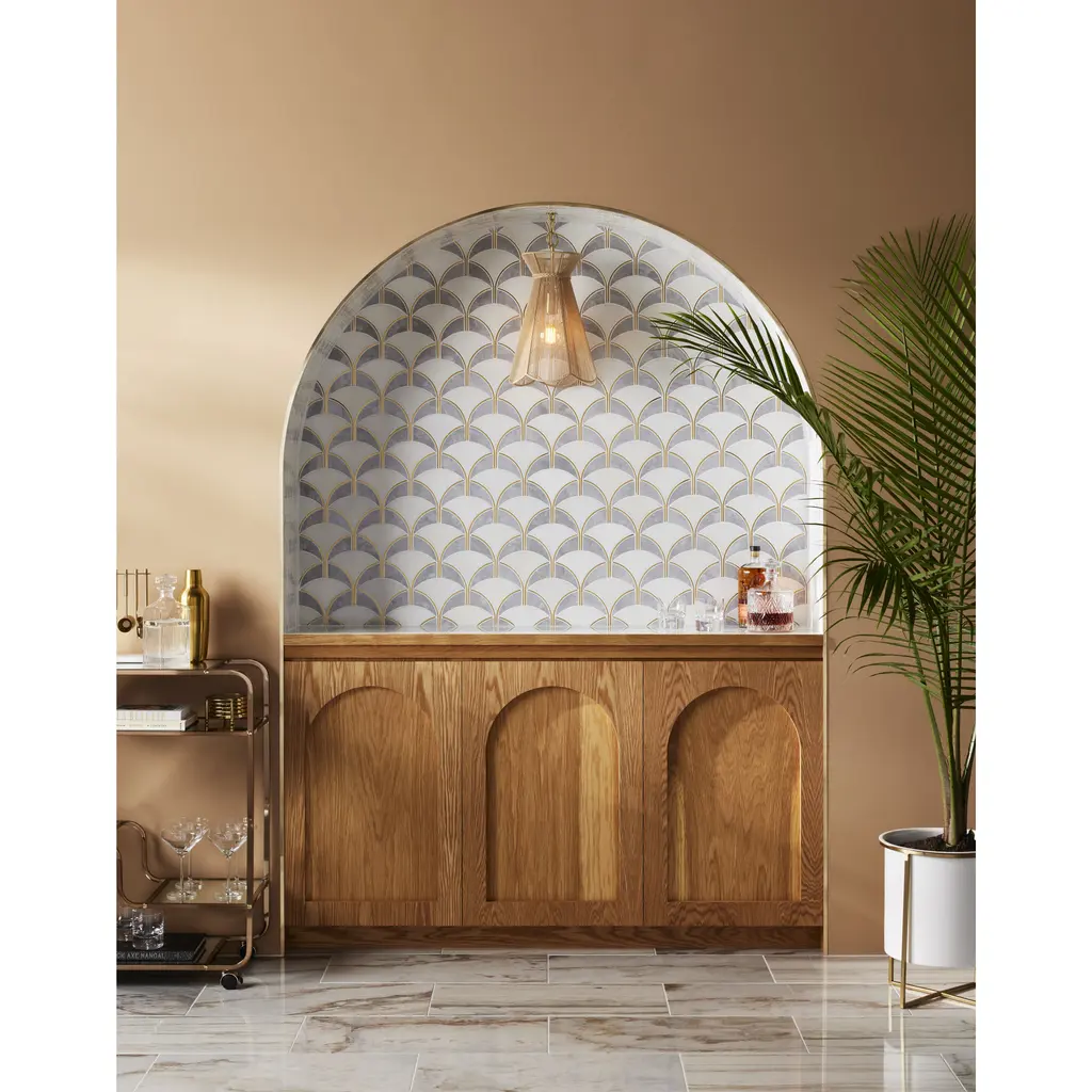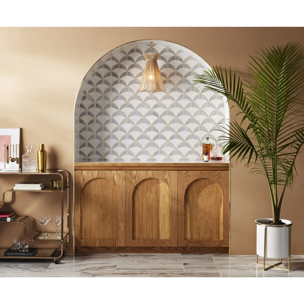 Aaliyah embodies the Grandmillenial design trend, blending natural material, flouncy form, and brassy finish with ease. The floral-inspired silhouette features strands of hand-strung cotton leading to a charming, scalloped edge. A delicate, braided band cinches the pendant's woven form, contrasted with an aged brass link chain.