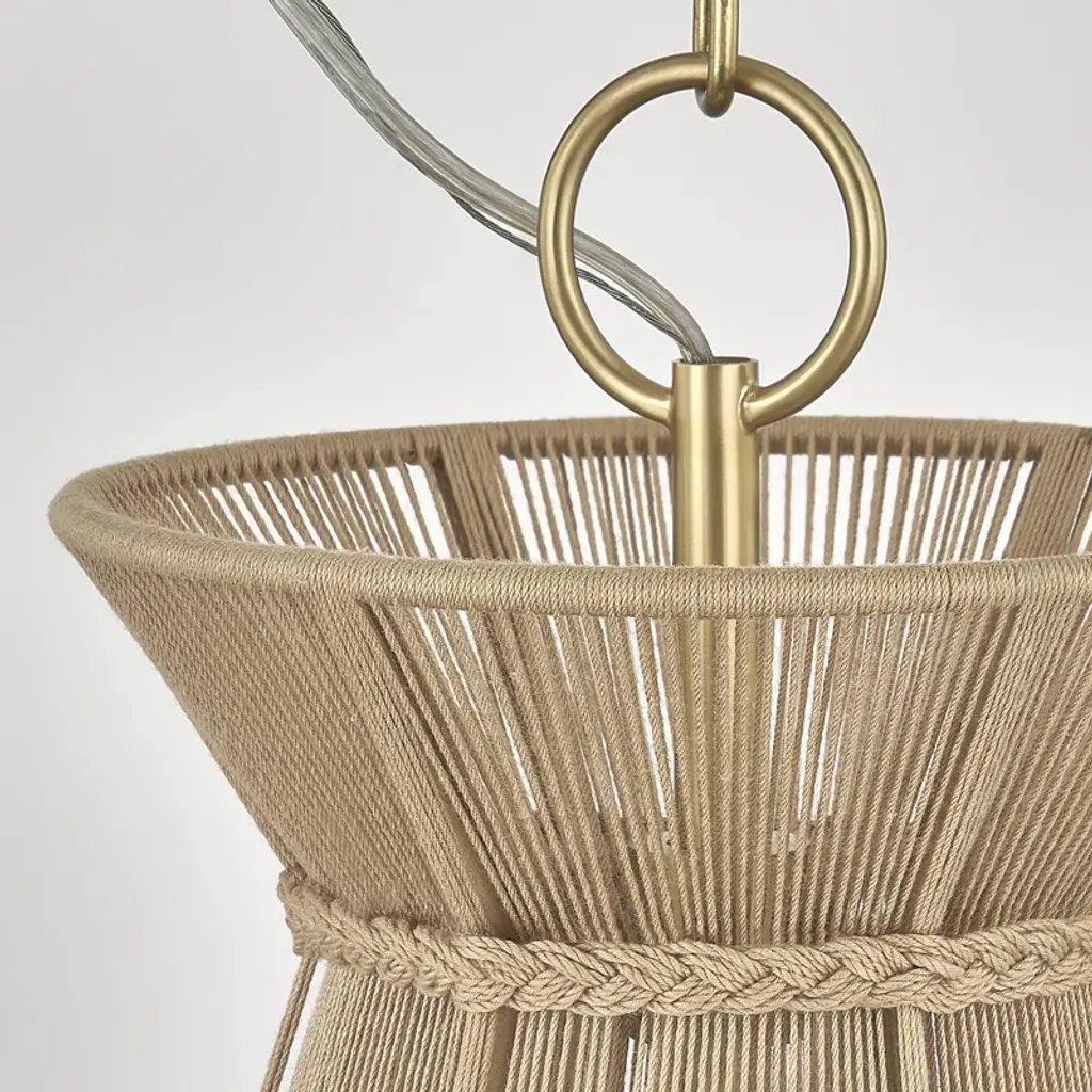 This fixture, featuring a unique natural cotton string shade, offers a warm and inviting ambiance for any area. Easily adjust the hanging height for perfect placement in your dining room , living room, or bedroom. This hardwired design provides an elegant and enduring lighting solution.