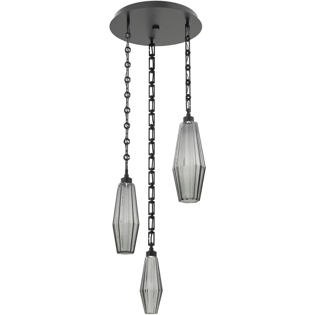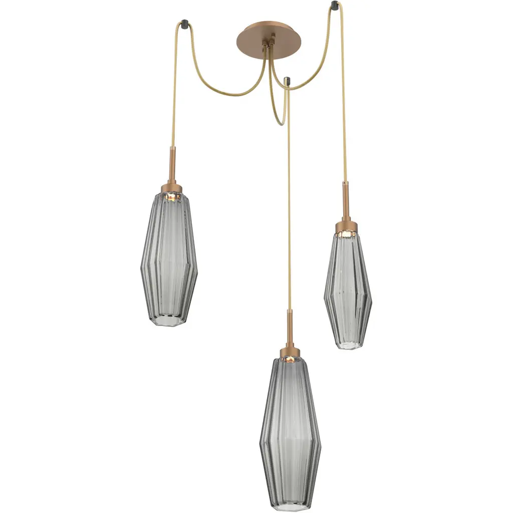 Aalto Led 14.8 Inch Flat Bronze Swag Multi-Pendant Ceiling Light In Optic Rib Smoke, 2700k Led