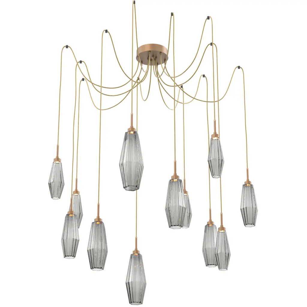 Aalto Led 14.8 Inch Flat Bronze Swag Multi-Pendant Ceiling Light In Optic Rib Smoke, 2700k Led