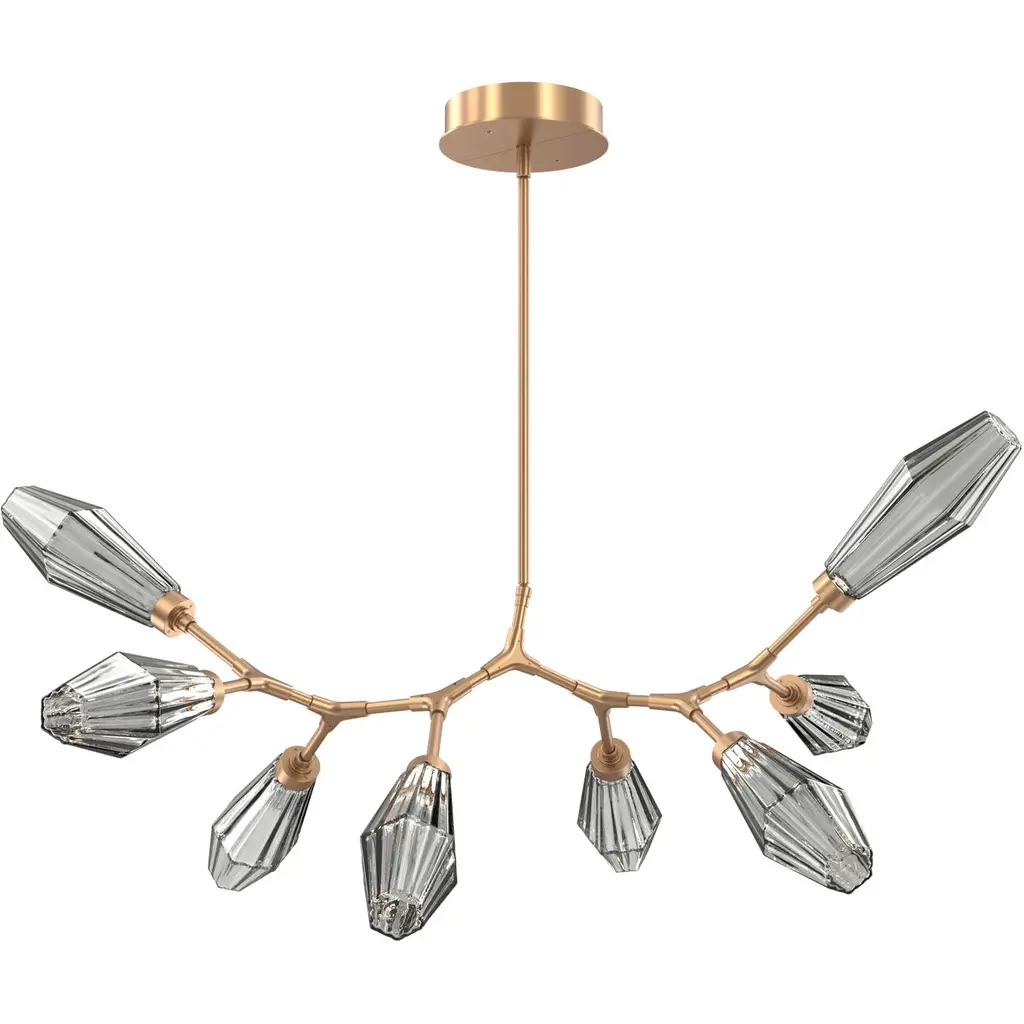 Aalto Modern Branch - 8 pc-Flat Bronze-Optic Rib Blown Glass - Smoke-Threaded Rod Suspension-LED