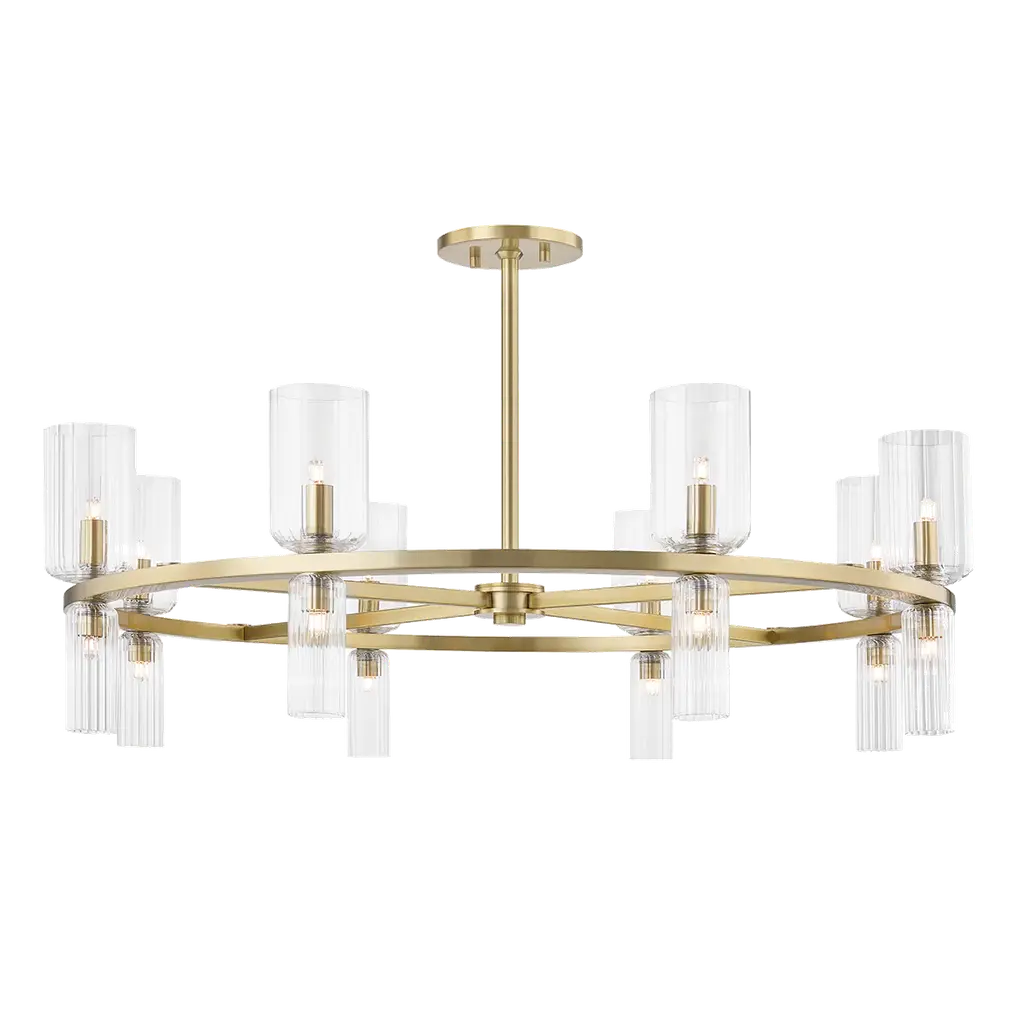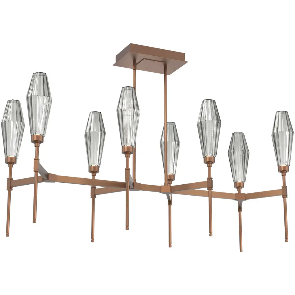 Aalto Led Gilded Brass Linear Pendant Ceiling Light In Optic Rib Smoke, 2700k Led
