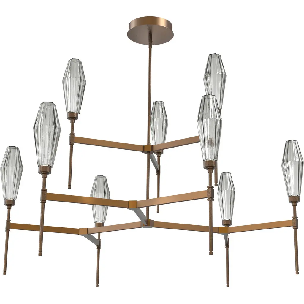 Aalto Linear Suspension-67-Gilded Brass-Optic Rib Blown Glass - Smoke-Threaded Rod Suspension-LED