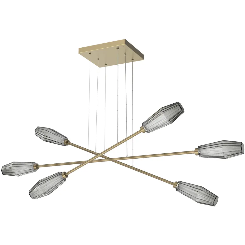 Aalto Led Novel Brass Linear Multi-Pendant Ceiling Light In 3000k Led, Smoke, Triple Moda