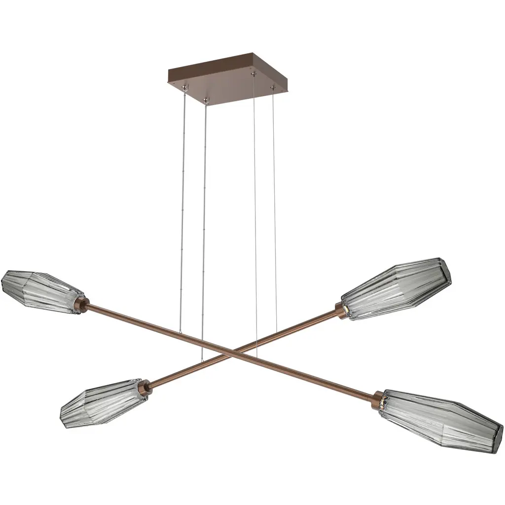 Aalto Led Novel Brass Linear Multi-Pendant Ceiling Light In 3000k Led, Smoke, Triple Moda