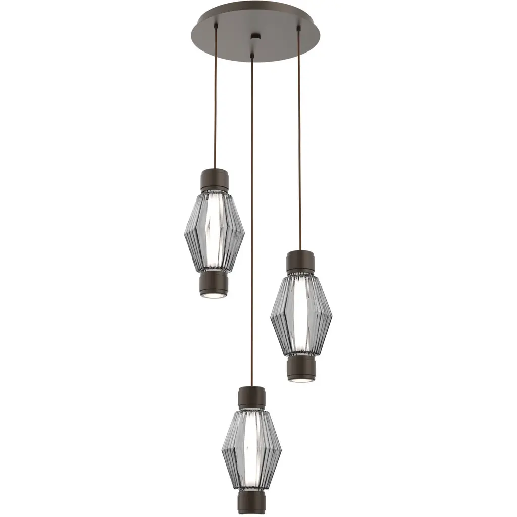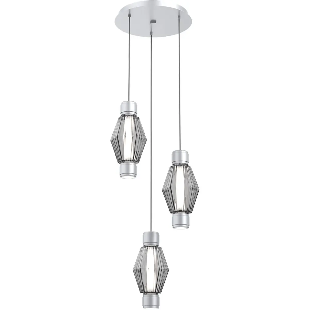 Aalto Mandrel Led Graphite Multi Pendant Chandelier Ceiling Light In 3000k Led, Optic Rib Smoke