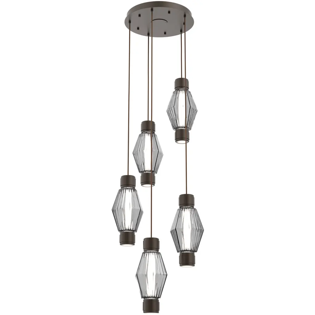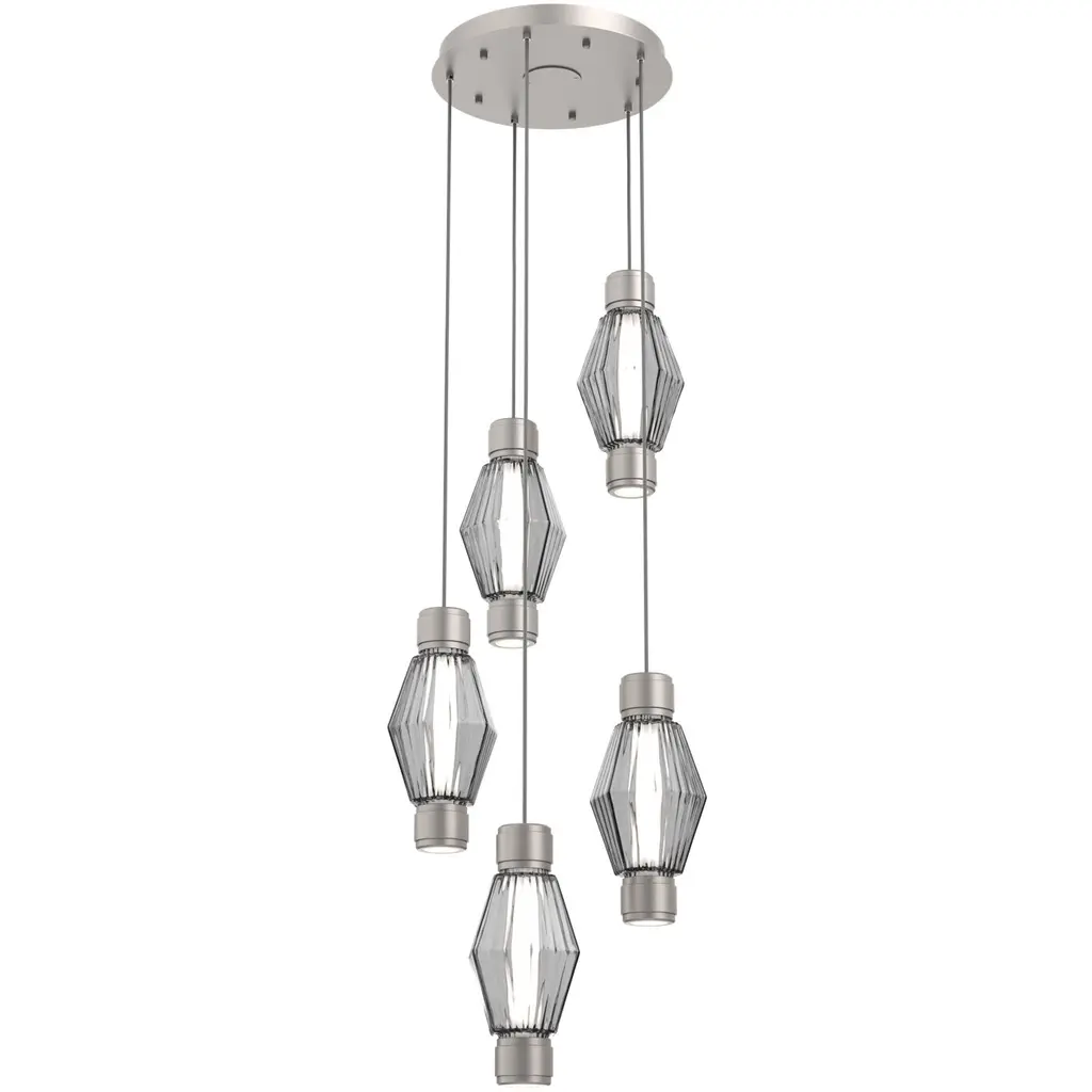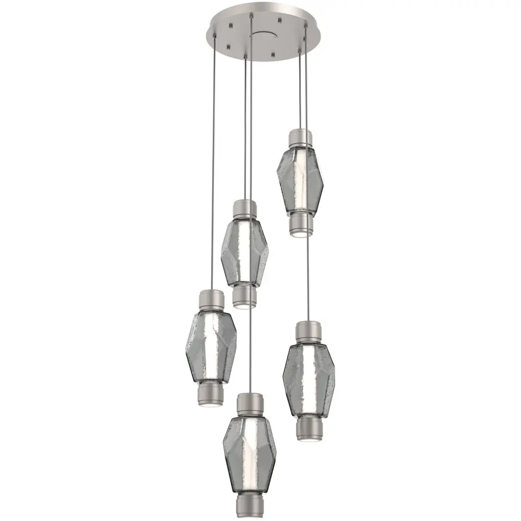 Mandrel Round 5pc Multi-Pendant - Aalto-Graphite-Smoke Blown Glass-Cloth Braided Cord-LED - 3000K