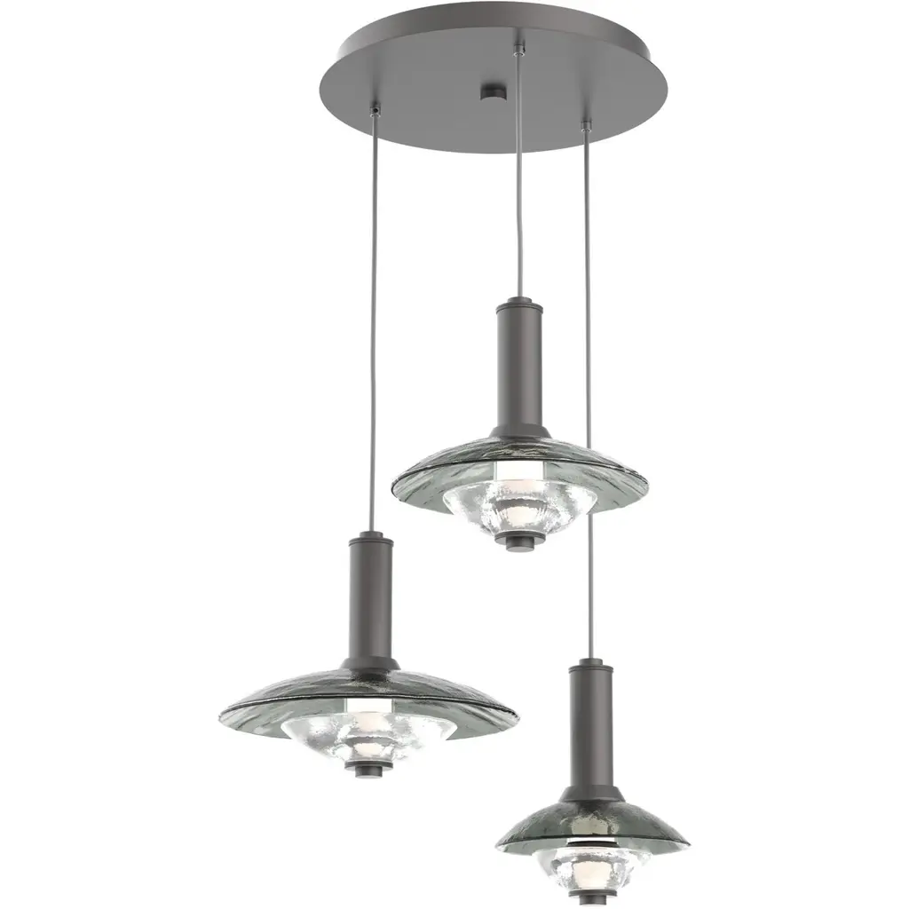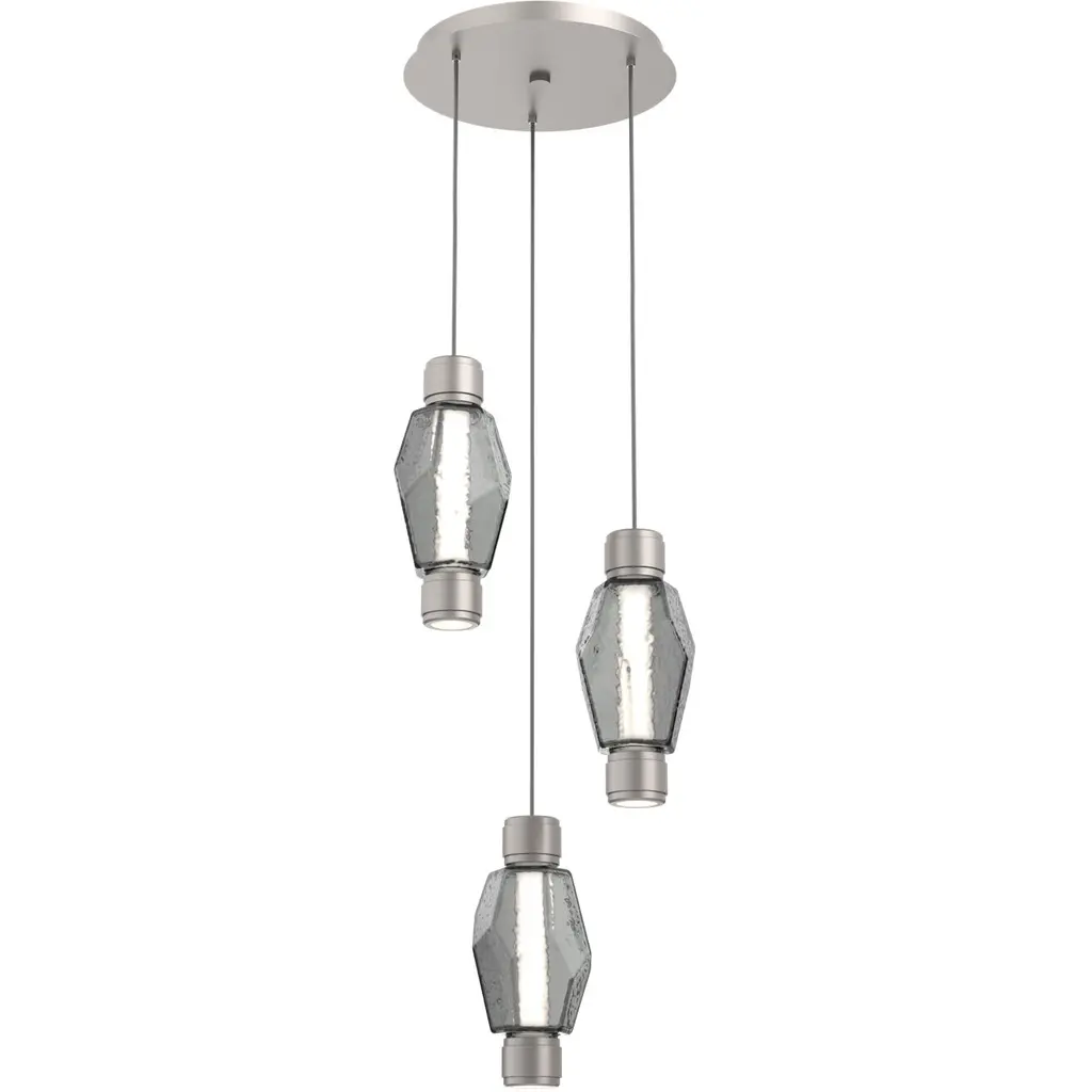 Mandrel Round 3pc Multi-Pendant - Aalto-Graphite-Smoke Blown Glass-Cloth Braided Cord-LED - 3000K