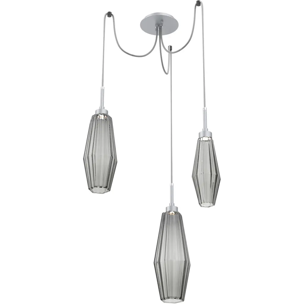 Aalto Mandrel Led Graphite Multi Pendant Chandelier Ceiling Light In 3000k Led, Optic Rib Smoke