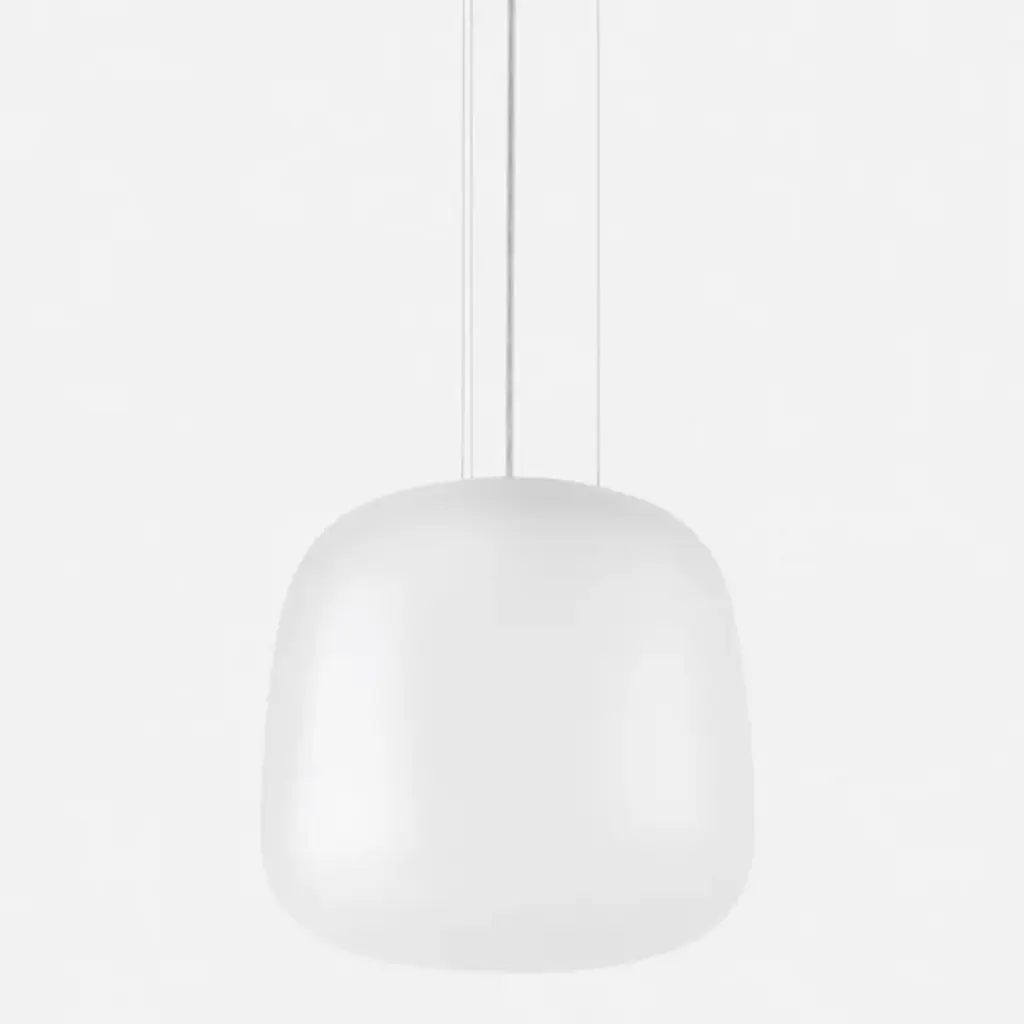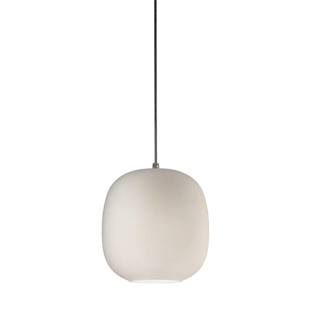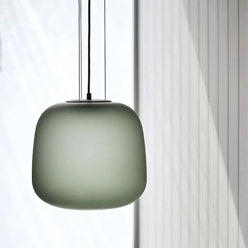 The AB LED Pendant from CITTA enlivens and illuminates spaces with an elegant ultra-modern presence, a triumph of simple, organic forms. A softly shaped metal and glass construction designed by Alex Buckman in collaboration with a 3D design team, it goes back to basic shapes, pairing them with luxurious materials for an elegant final product. The fixture descends from a low-profile canopy via an array of slender, strong cables, placing strong and energy-friendly integrated LED lamping inside a curving shade of hand-blown glass in a fixed mold that appears to float over its surroundings. Minute imperfections make each piece unique, transforming bright light into a generous glow.