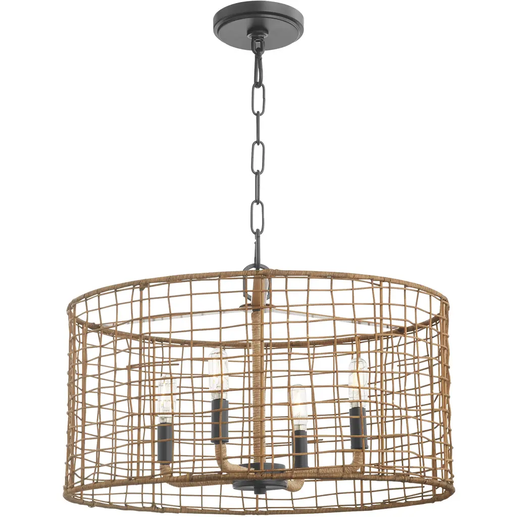 Abaca 4 Light 20 Inch Matte Black Pendant Ceiling Light
