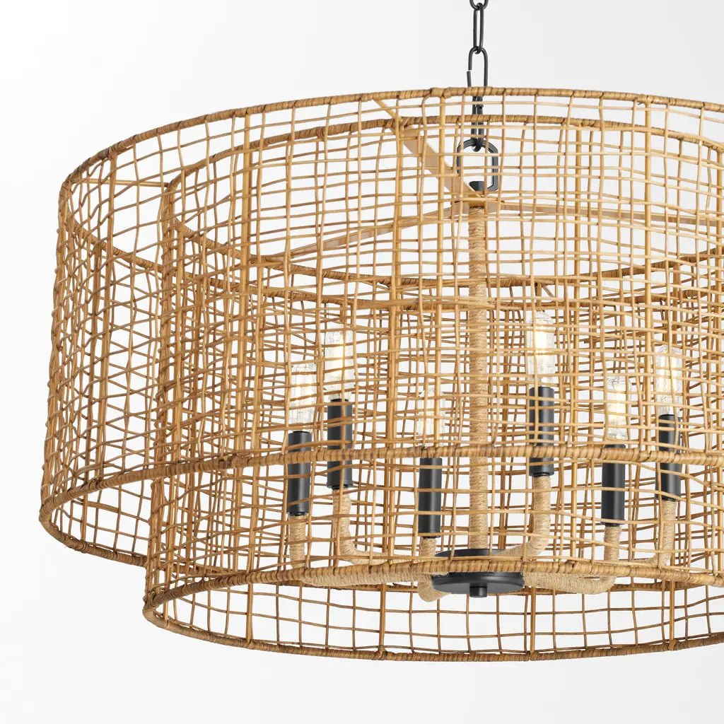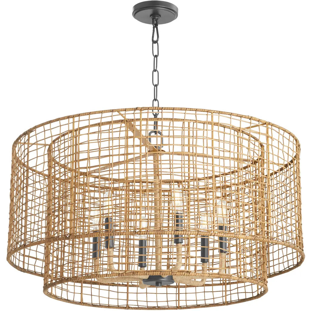 Abaca 6 Light 30 Inch Matte Black Pendant Ceiling Light
