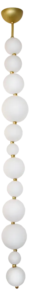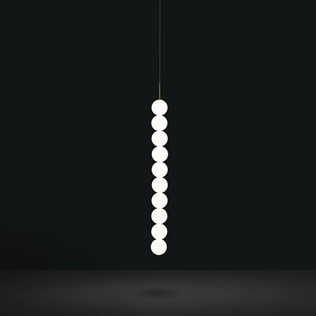 Mathematically inspired modern lighting design. The Abacus 10 Sphere LED Pendant by Terzani showcases pure precision as well as vibrant all-around light in its strand of 10 spheres. Its simple design is inspired by that ancient mathematical tool, the abacus. Each sphere is made out of hand-blown White Satin glass, a material that gives the fixture a sense of brightness whether it’s turned on or off. When it’s turned on, the light from the integrated LED glows through and all-around each sphere. While designed to be used in custom configurations, just one pendant will certainly make an impression in any modern space.