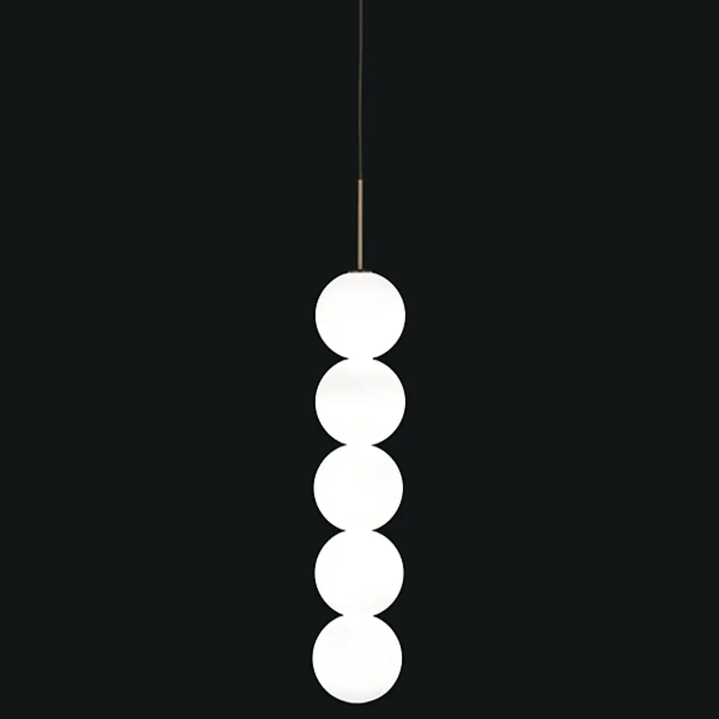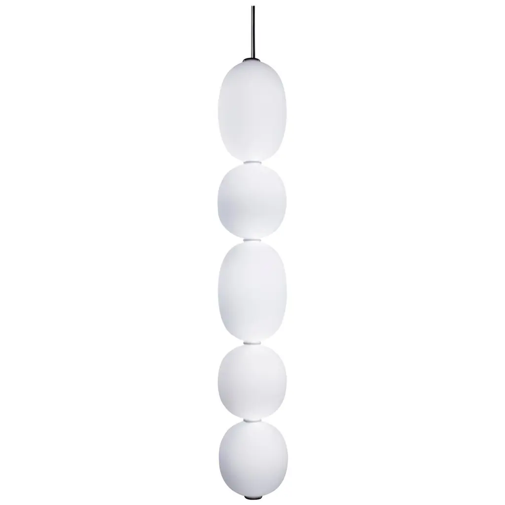 A jewel-like strand of spheres inspired by mathematical tools. Design team Draw based their design of the Abacus 15 Sphere LED Pendant by Terzani on the pure lines and simple functionality of an abacus. To that end, the beads of that tool are replicated here by a column of 15 hand-blown Satin White Glass spheres. In addition to being visually pleasing, the perfectly smooth spheres enhance the light produced by integrated LEDs by drawing it all the way down the strand and then diffusing it outward in all directions. This pendant will look minimally gorgeous all on its own or installed in multiples in any modern interior.