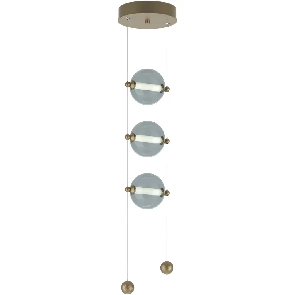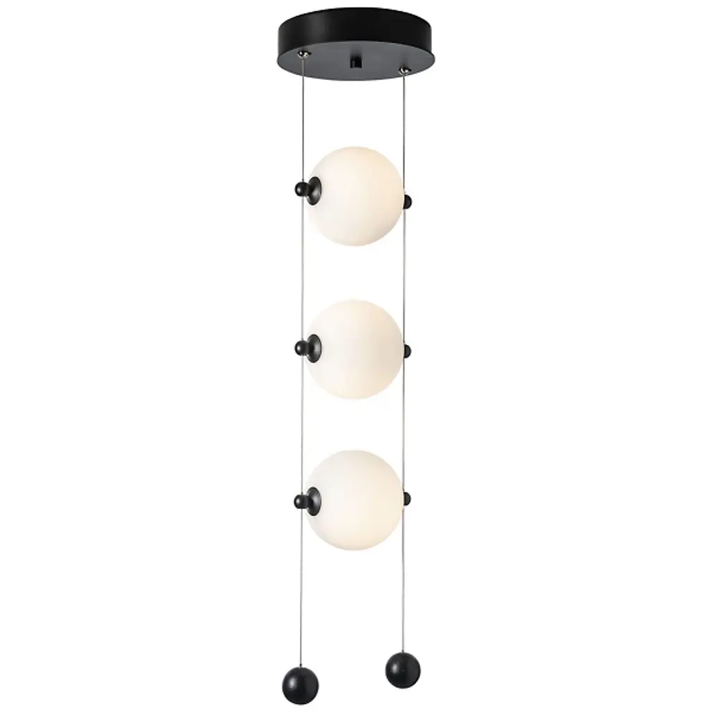 Fine lighting design created with mathematical precision. Inspired by the tool of the same name, the Abacus 3-Light LED Multi-Light Pendant by Hubbardton Forge has 3 glass spheres that can be moved up or down slender low voltage cables to create a desired lighting and decorative effect; simply pinch the side grippers on either side of the shades to put things in motion. In an entryway, on either side of bed or sofa, this multi-light pendant provides bright ambience and geometric beauty.
