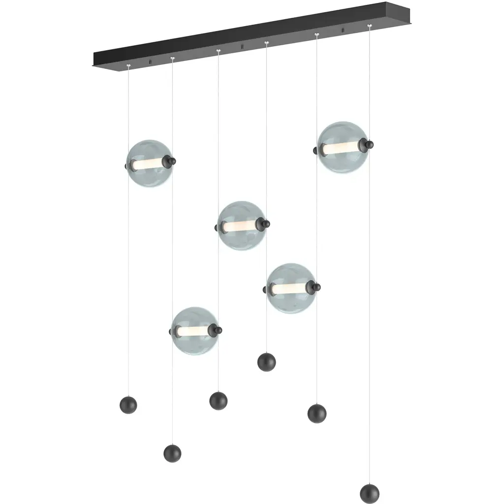 An addition to the award-winning Abacus Collection, this Abacus Double Linear LED Pendant features 7 glass globes of large and small sizes in a linear format, versatile enough to hang over a bar or island, dining table or wall as an art installation, or any other space demanding a linear installation with some depth.