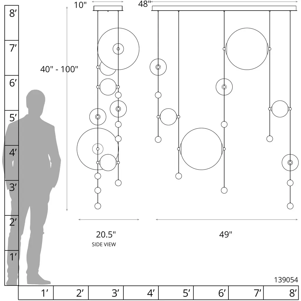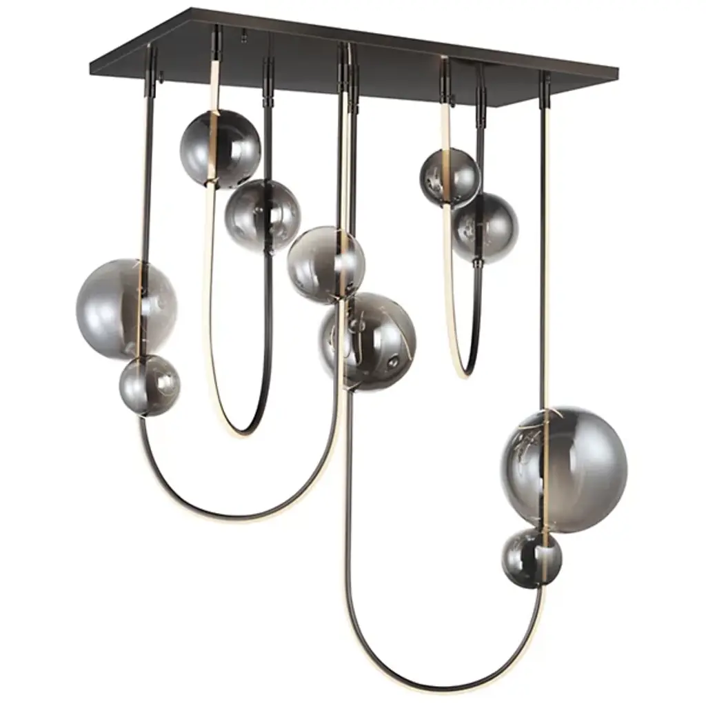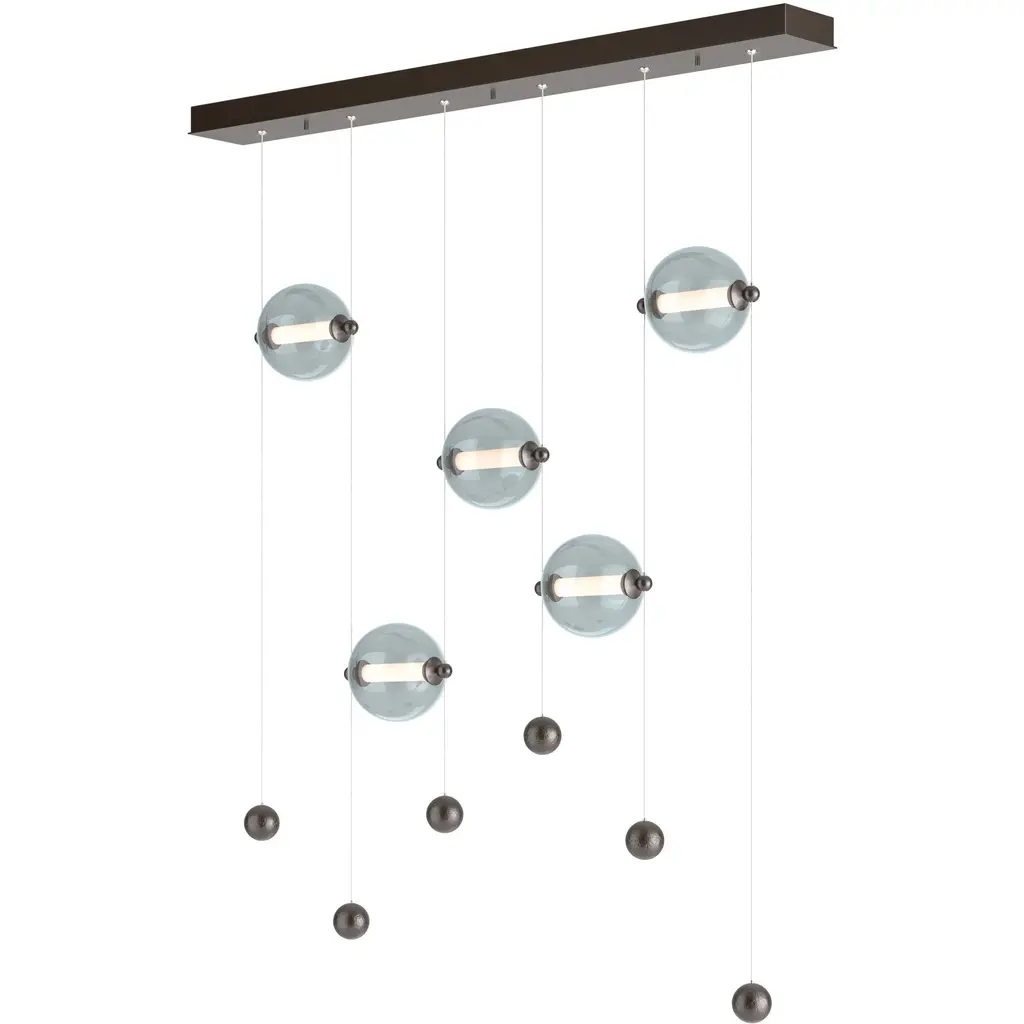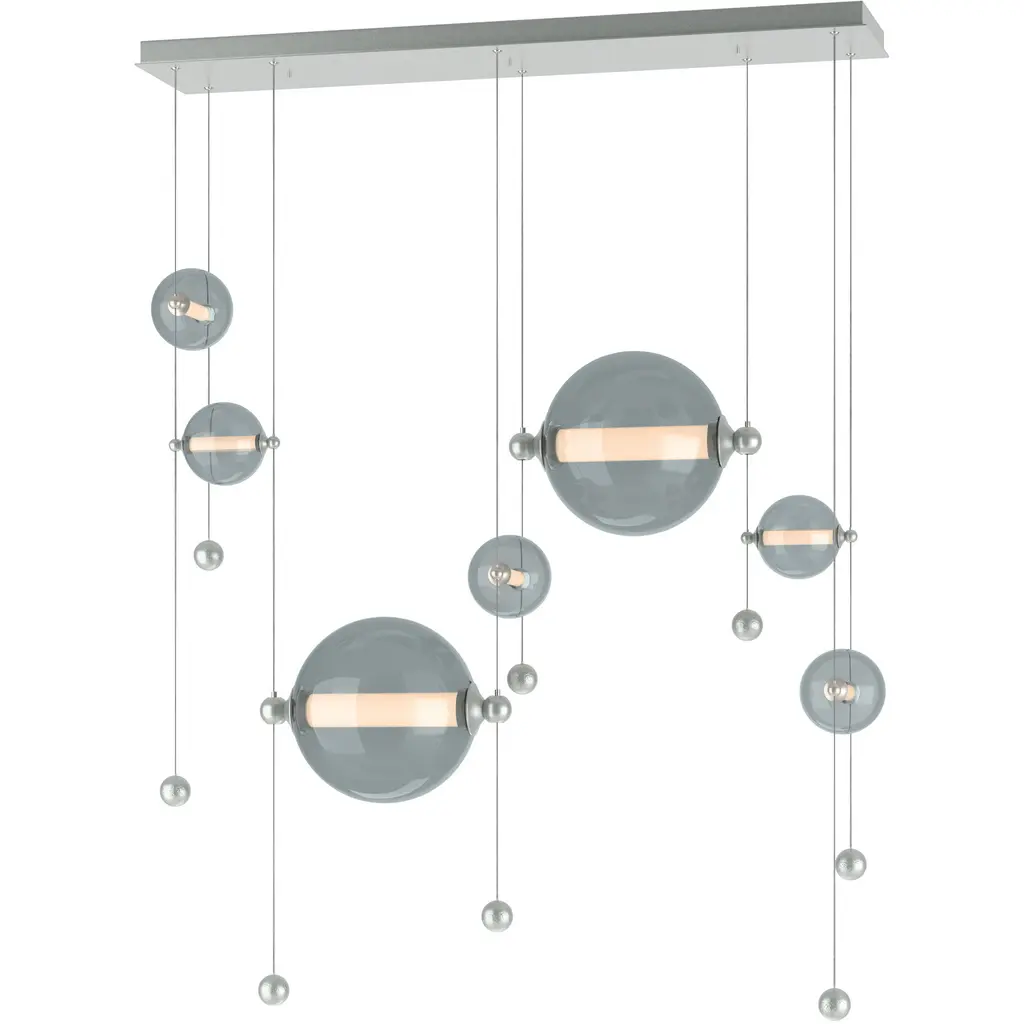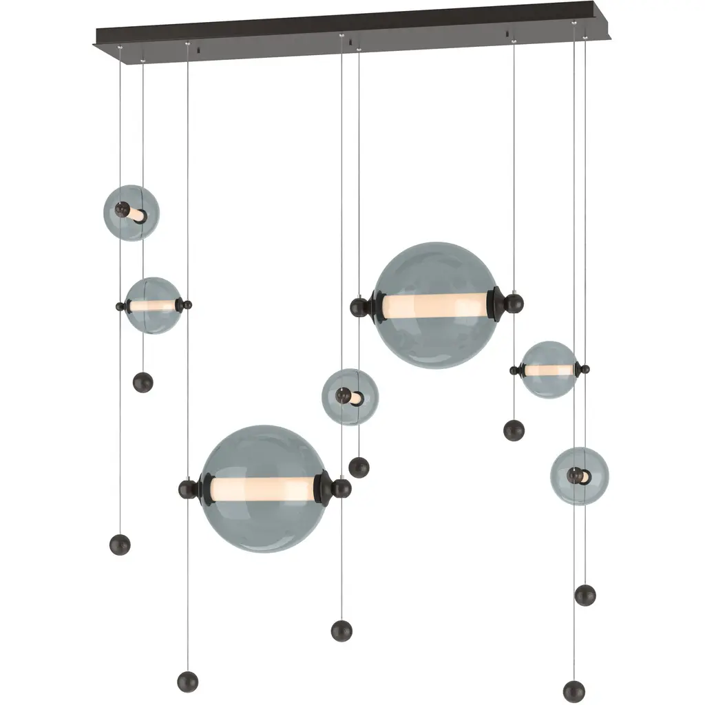 An addition to the award-winning Abacus Collection, this Abacus Double Linear LED Pendant features 7 glass globes of large and small sizes in a linear format, versatile enough to hang over a bar or island, dining table or wall as an art installation, or any other space demanding a linear installation with some depth.