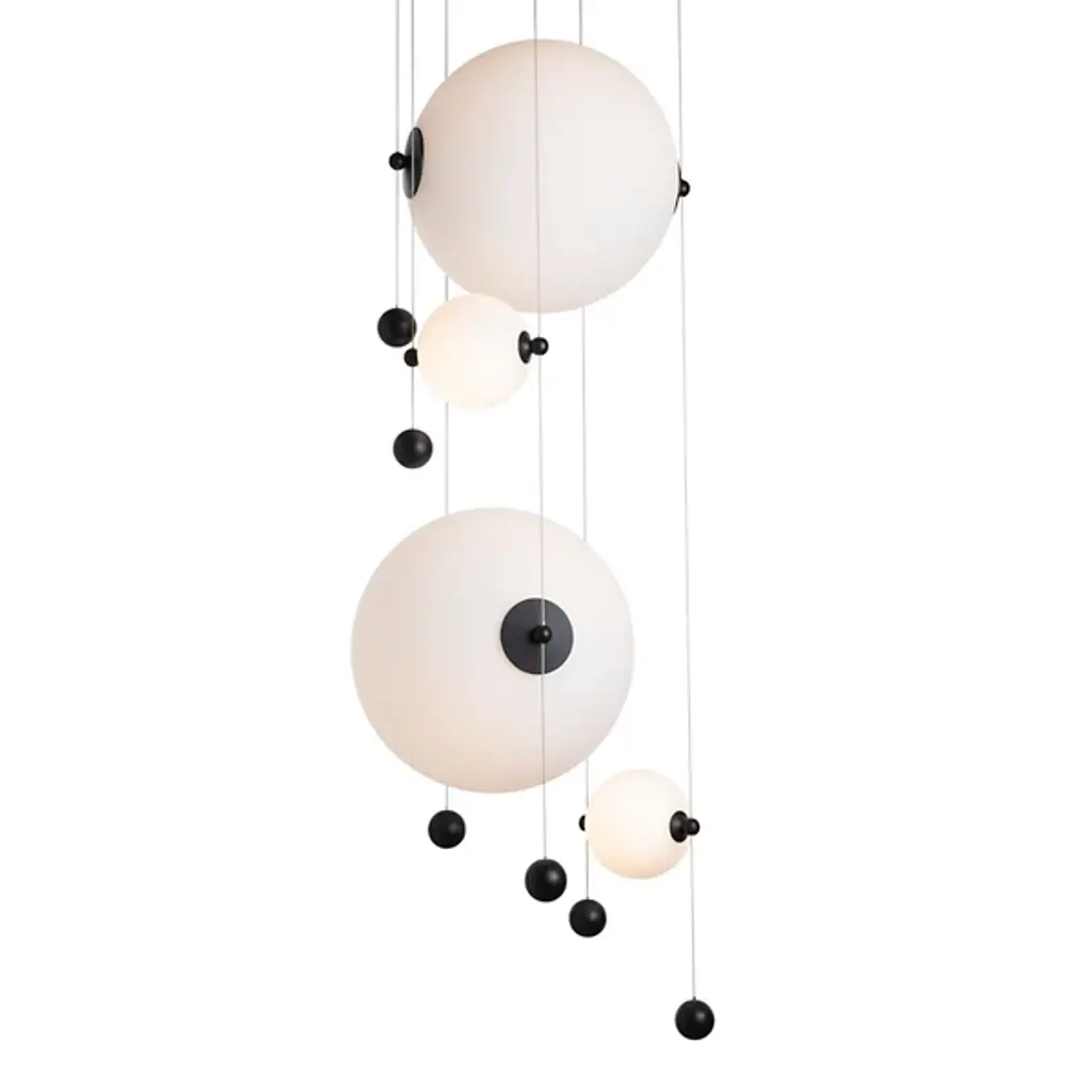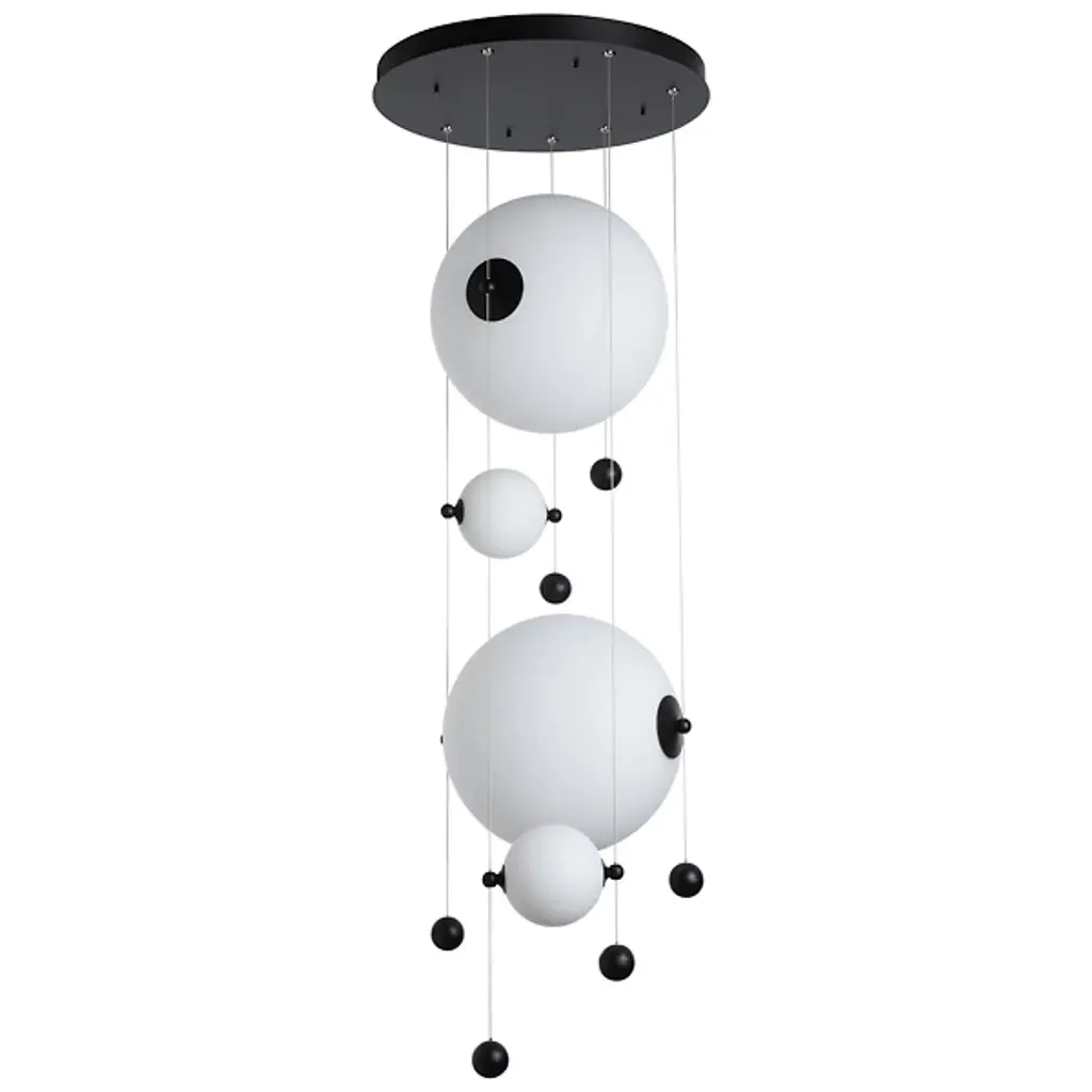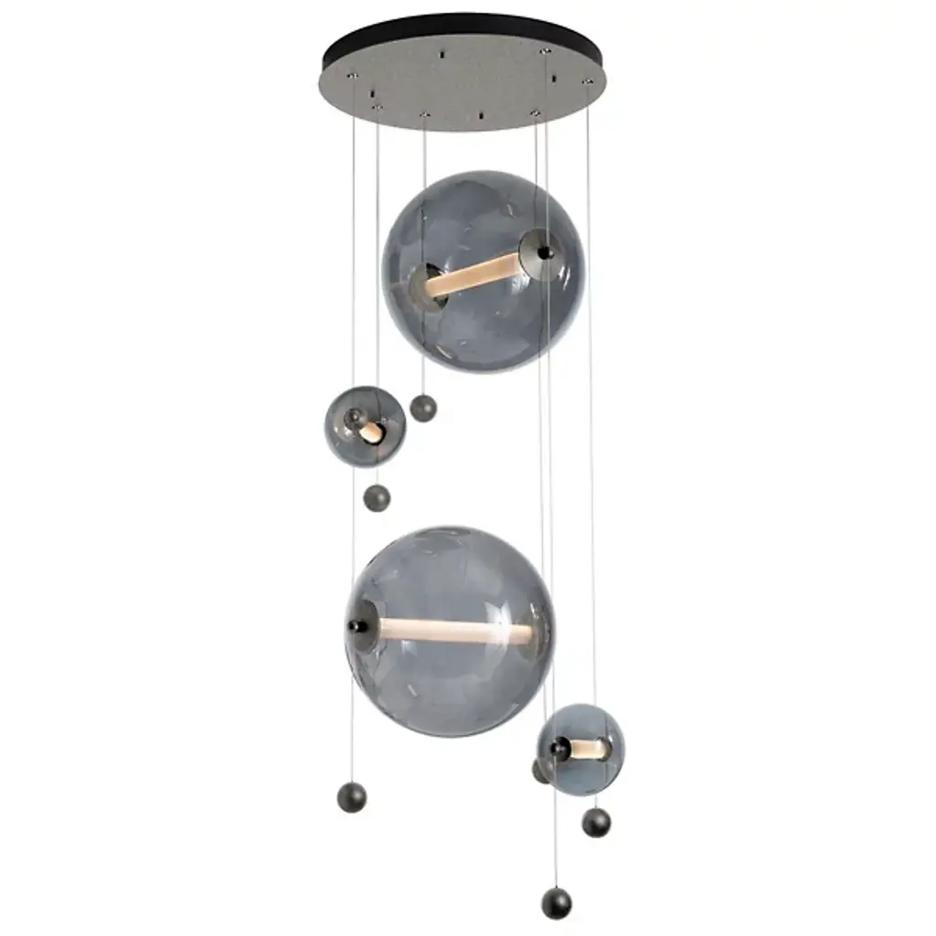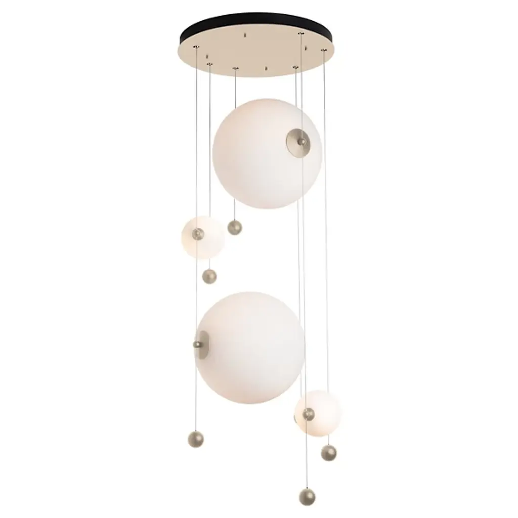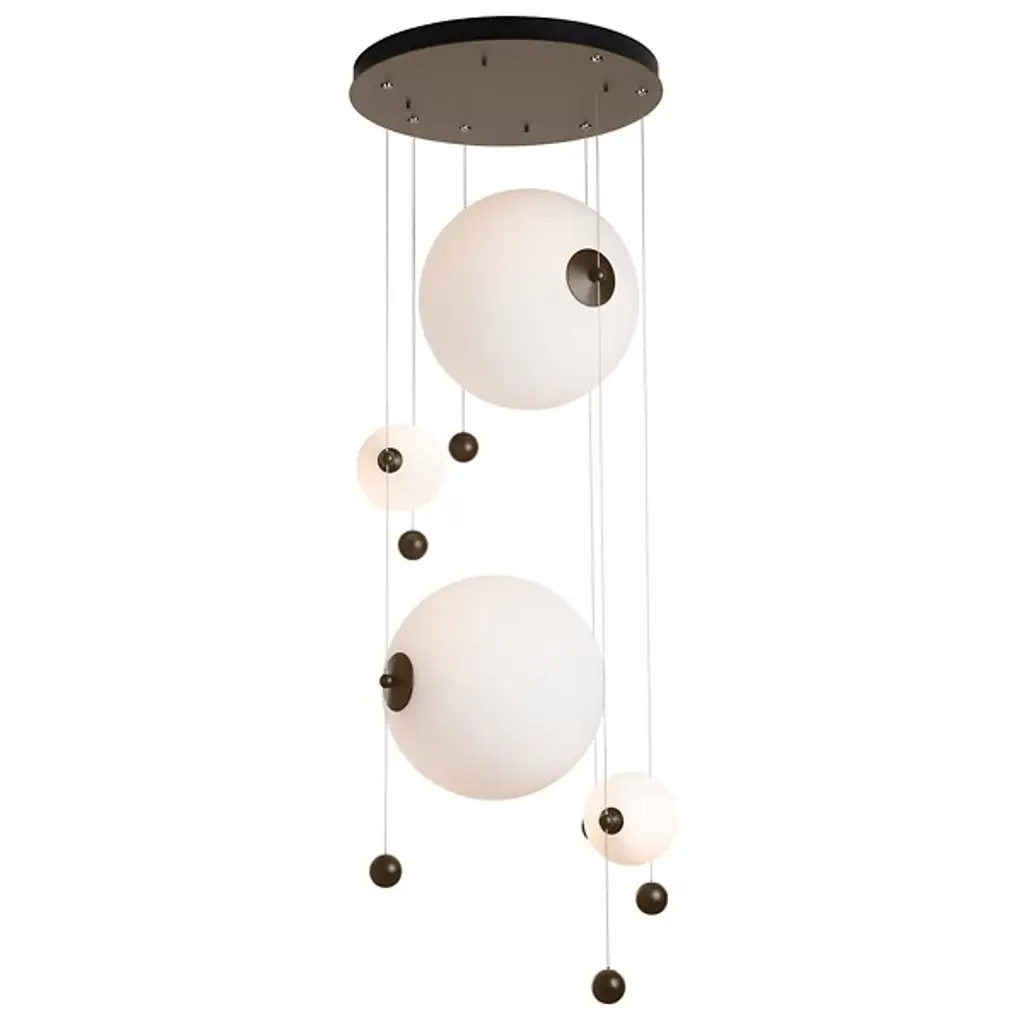 With a dynamic, eye-catching display of light, the Abacus Round LED Multi-Light Pendant by Hubbardton Forge brings an artful air to interiors. Descending from a circular ceiling mount, a set of thin cables suspend an arrangement of small and large globes. LEDs illuminate larger opal glass orbs, creating glowing figures that connect to surrounding wires by contrasting holders on each side. Ideal as a focal piece, this fixture provides warm and efficient light while elevating interior décor.