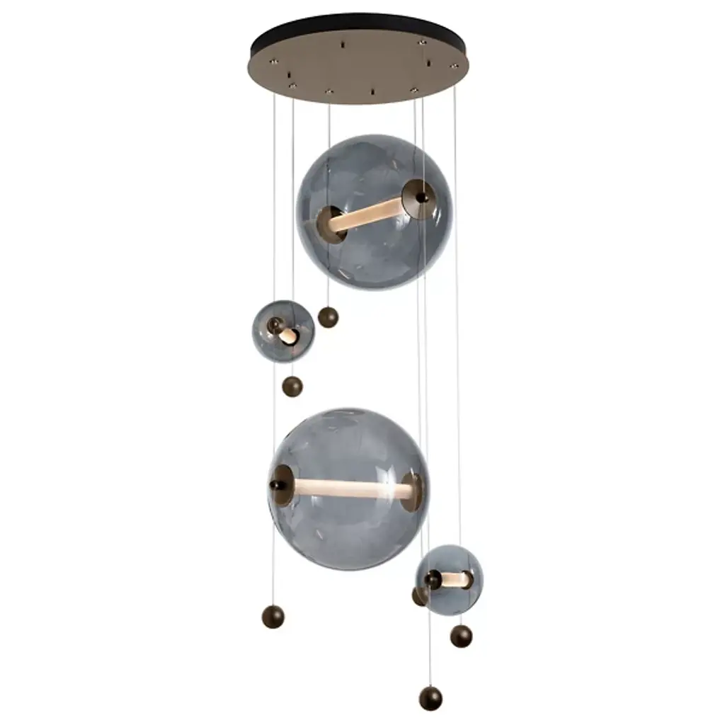 With a dynamic, eye-catching display of light, the Abacus Round LED Multi-Light Pendant by Hubbardton Forge brings an artful air to interiors. Descending from a circular ceiling mount, a set of thin cables suspend an arrangement of small and large globes. LEDs illuminate larger opal glass orbs, creating glowing figures that connect to surrounding wires by contrasting holders on each side. Ideal as a focal piece, this fixture provides warm and efficient light while elevating interior décor.