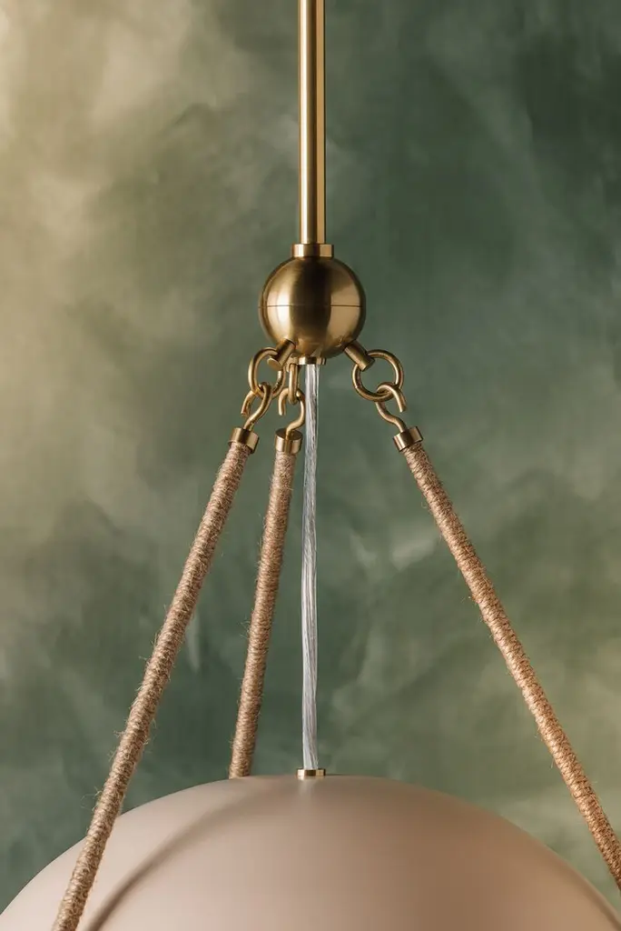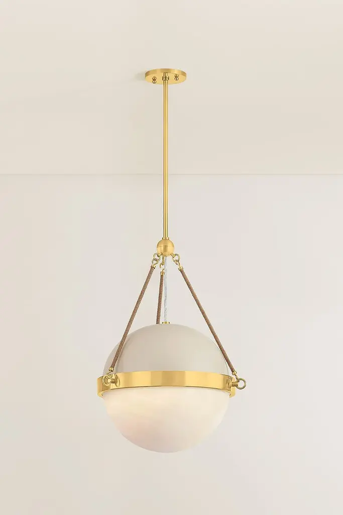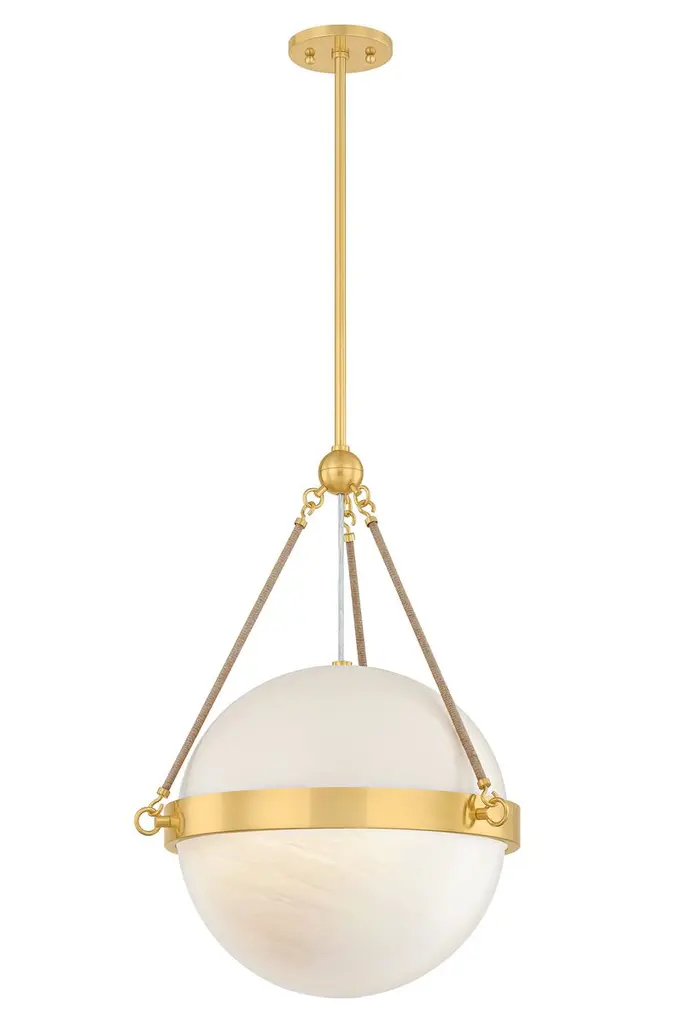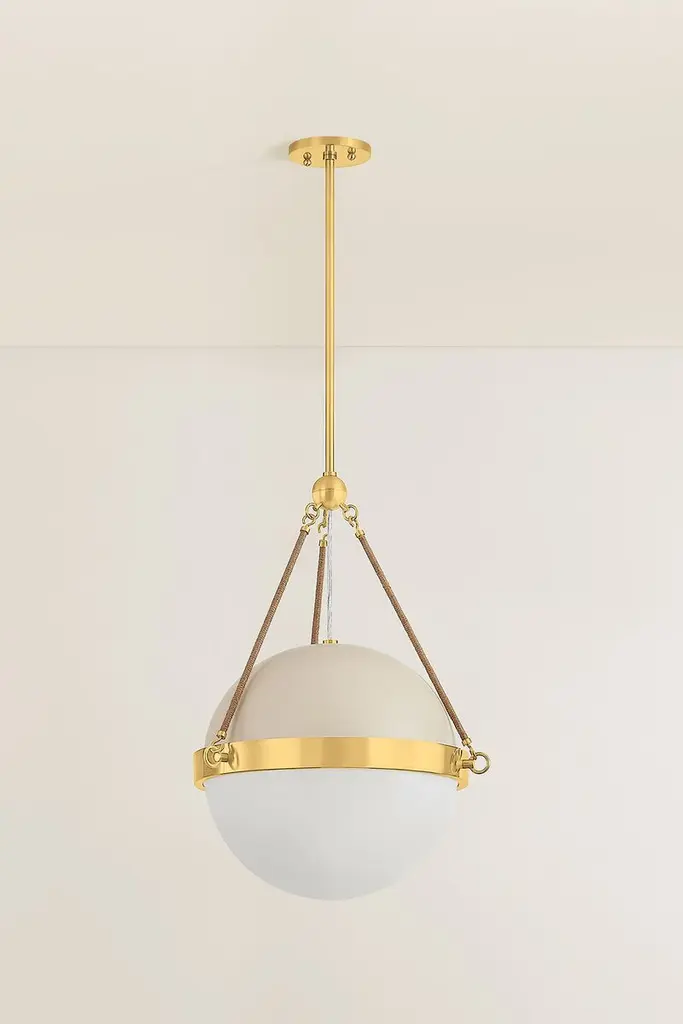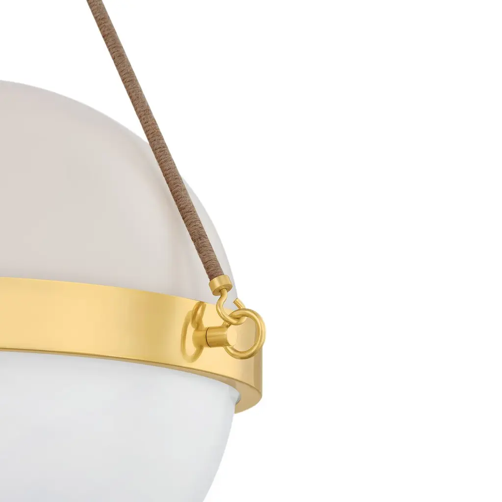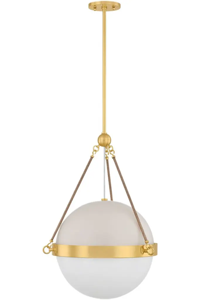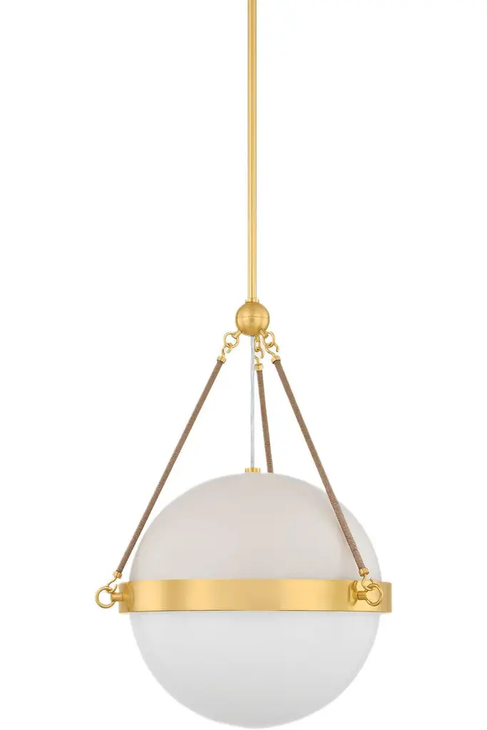 Abbie Glass Globe Pendant, Aged Brass/soft Bisque/jute Rope