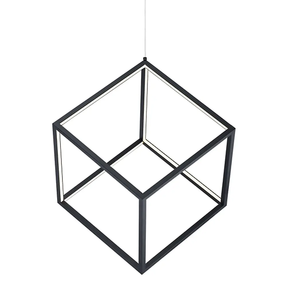 Simple and appealing, the Abele LED Pendant from Huxe elevates the décor with familiar geometry set at a beautiful and intriguing angle. Hanging from a single thin wire is an open cube formed from thin metal lines and sharp angles. The interior sides of much of the piece are lined with clean acrylic, which houses an integrated LED. The light diffuses through the material, flowing throughout the shape and your home as a warm and inviting ambient light.