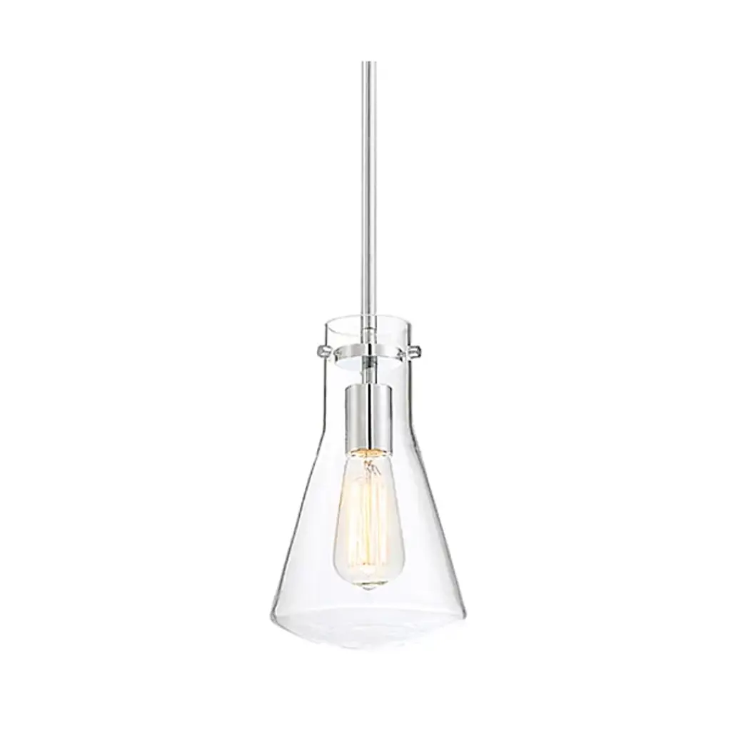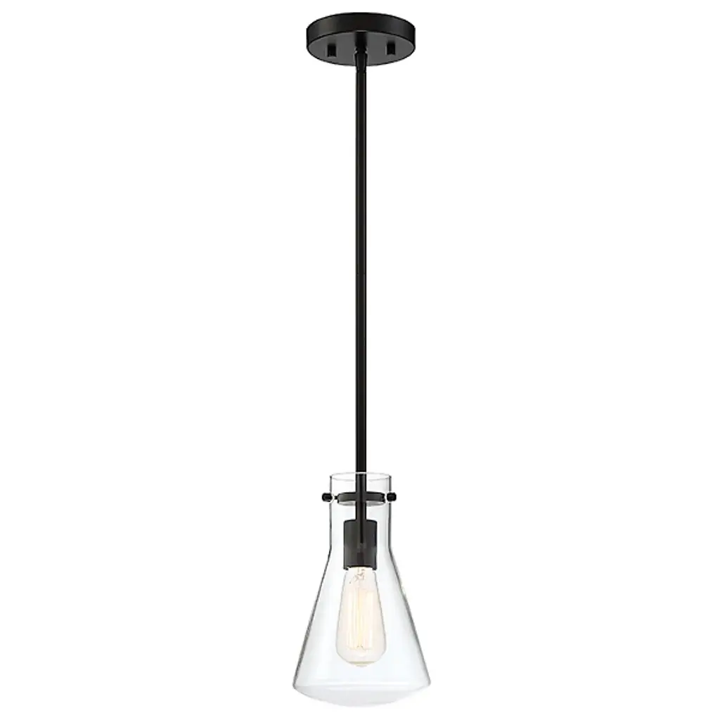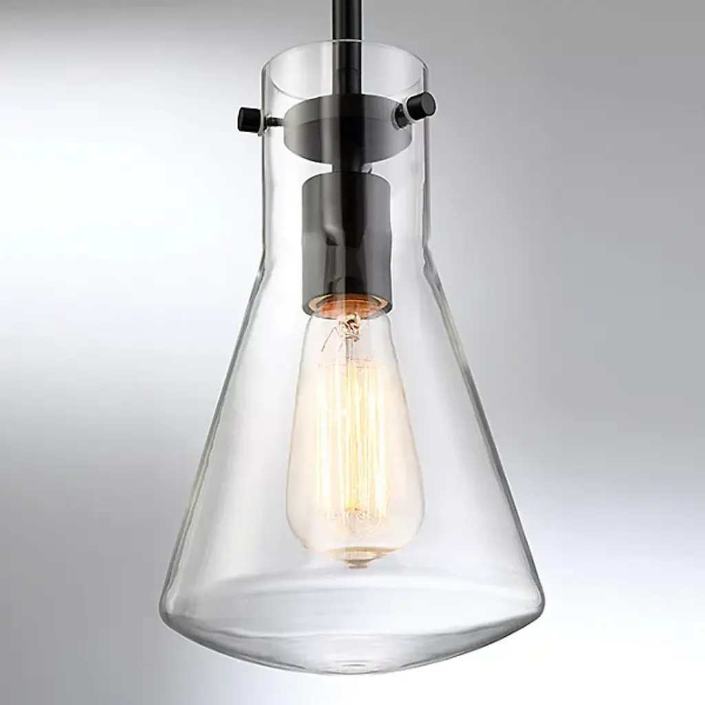 The science of sophistication. Featuring a beaker-shaped glass shade, the Abigail Mini Pendant by Alder & Ore is a successful experiment in style. Its clean lines are supported by equally minimalistic hardware, showcasing this pendant's single bulb with a modest motif that complements any home décor and looks trendy above a table for two, bartop or accent space.