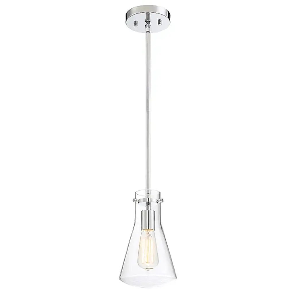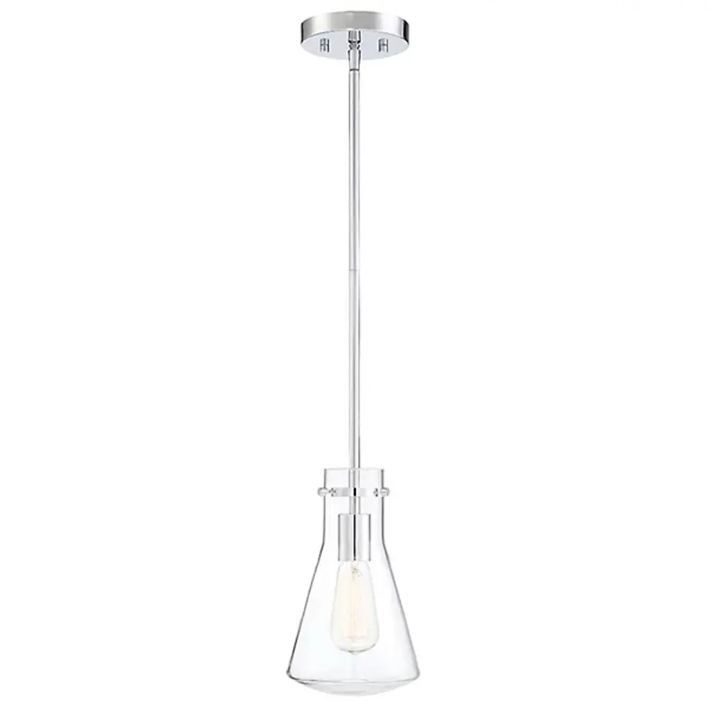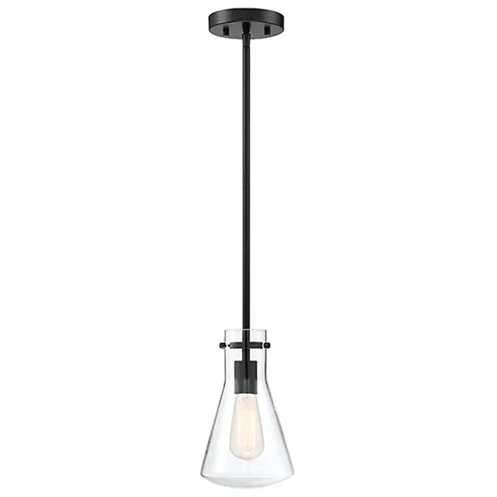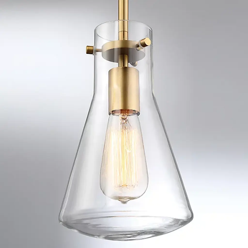 The science of sophistication. Featuring a beaker-shaped glass shade, the Abigail Mini Pendant by Alder & Ore is a successful experiment in style. Its clean lines are supported by equally minimalistic hardware, showcasing this pendant's single bulb with a modest motif that complements any home décor and looks trendy above a table for two, bartop or accent space.