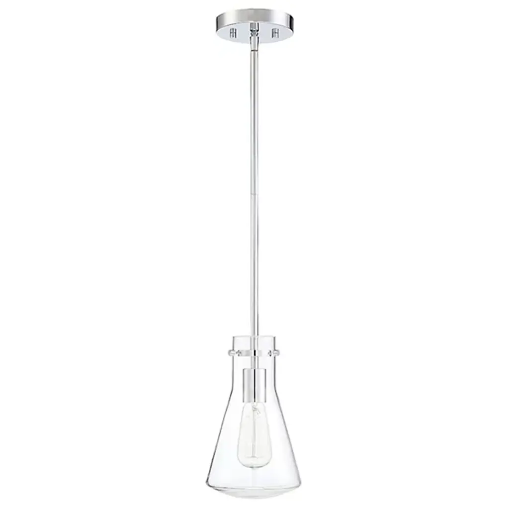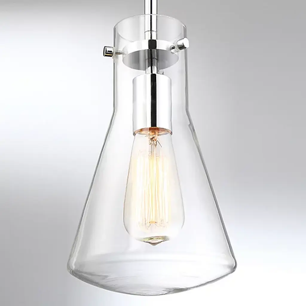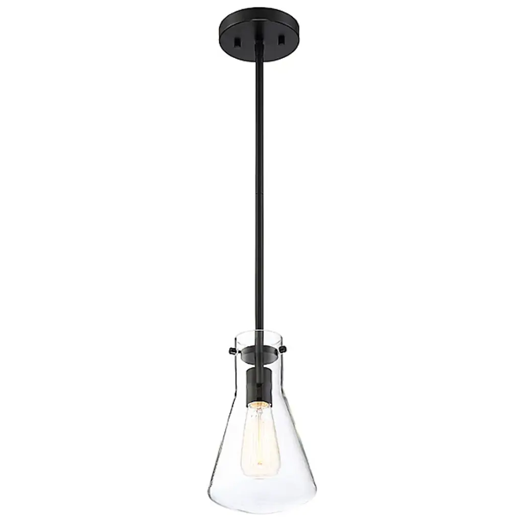 The science of sophistication. Featuring a beaker-shaped glass shade, the Abigail Mini Pendant by Alder & Ore is a successful experiment in style. Its clean lines are supported by equally minimalistic hardware, showcasing this pendant's single bulb with a modest motif that complements any home décor and looks trendy above a table for two, bartop or accent space.