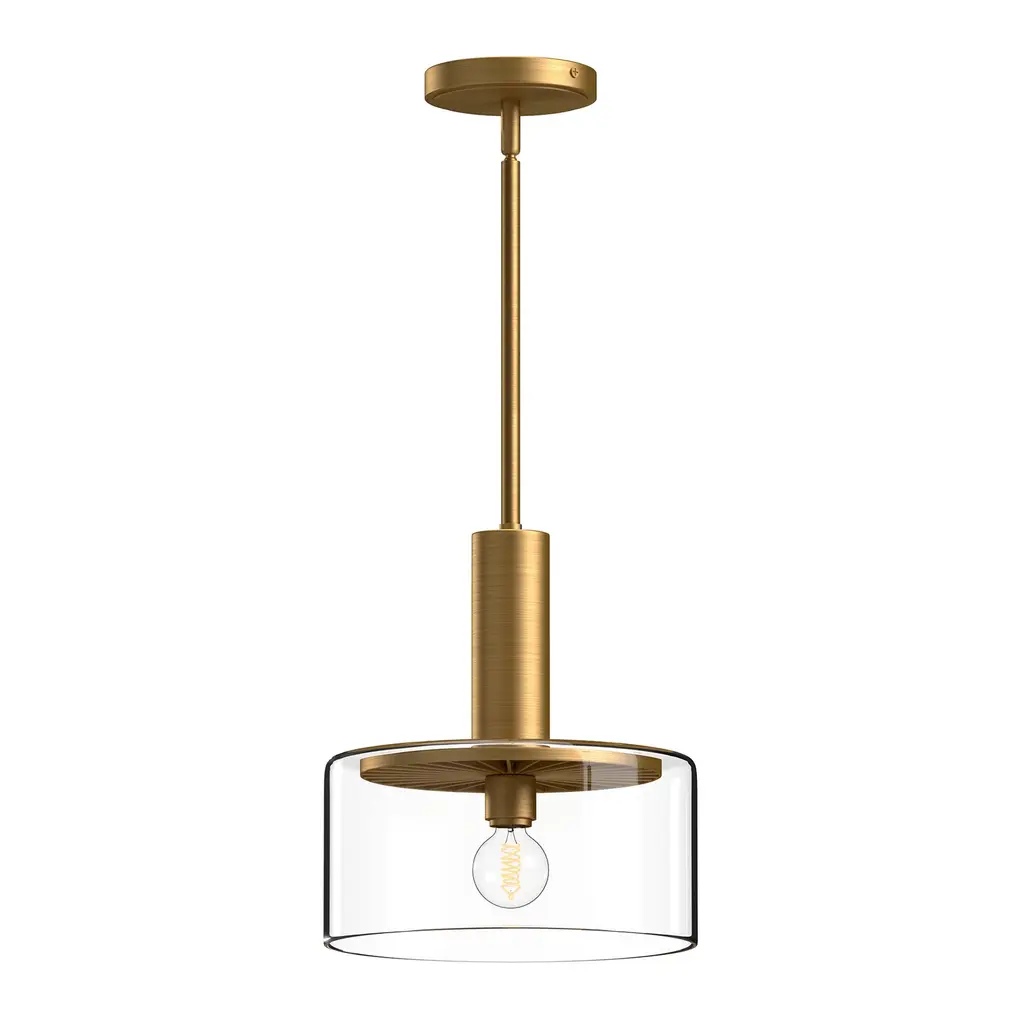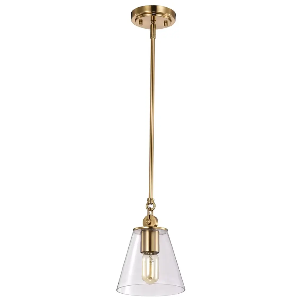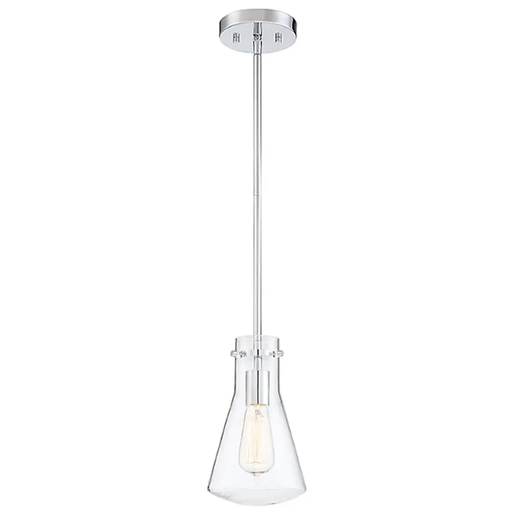 The science of sophistication. Featuring a beaker-shaped glass shade, the Abigail Mini Pendant by Alder & Ore is a successful experiment in style. Its clean lines are supported by equally minimalistic hardware, showcasing this pendant's single bulb with a modest motif that complements any home décor and looks trendy above a table for two, bartop or accent space.