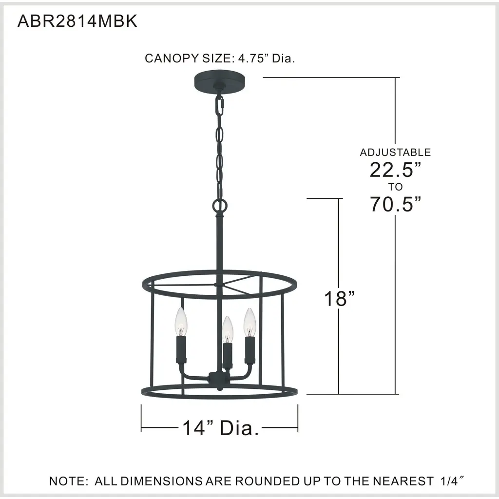 Abner 3 Light 14 Inch Matte Black Pendant Ceiling Light