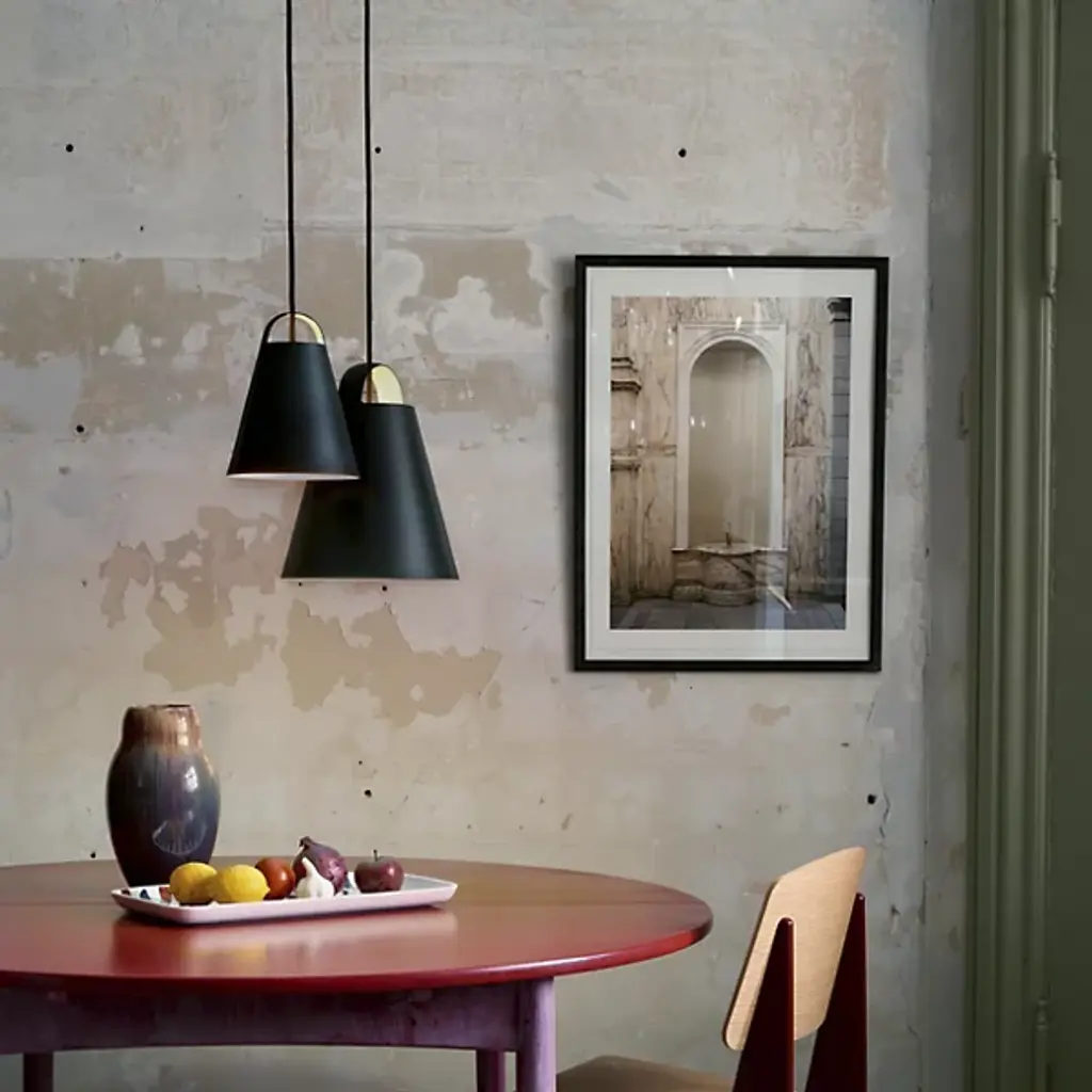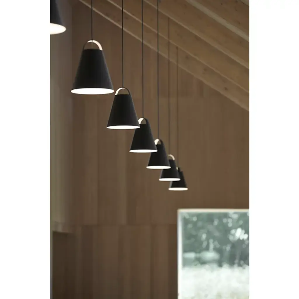 The Above Pendant from Louis Poulsen is designed by Mads Odgard. True to his minimalist philosophy, Odgard has crafted this pendant as a function-first decorative piece. This simplistic design features a cone-shaped body made of spun aluminum with an arch-shaped opening at the top, allowing for a discreet uplight in addition to a funneled downlight. This light fixture is crafted in the Scandinavian tradition of design. Your pendant provides a clean, subdued ambiance for both commercial and residential settings.