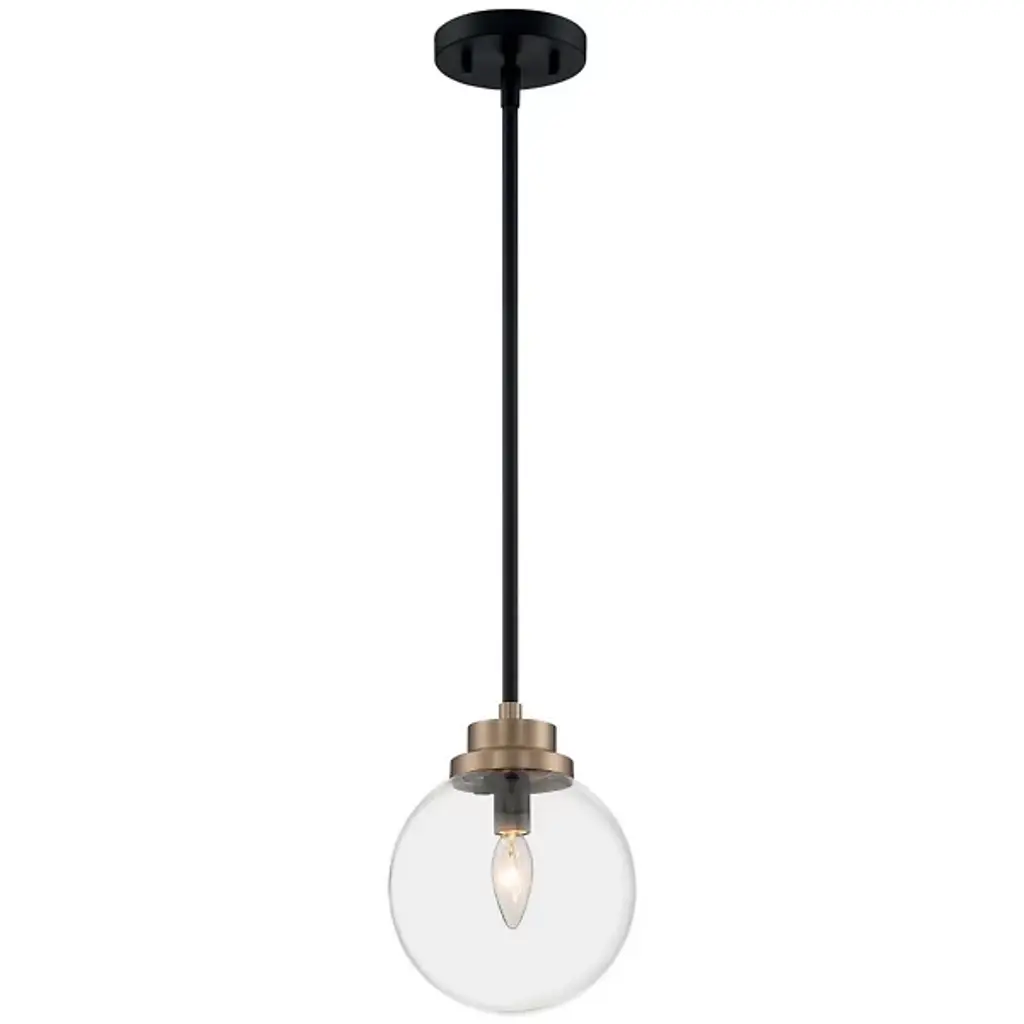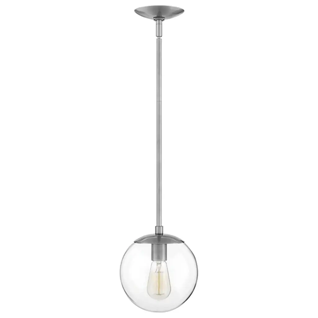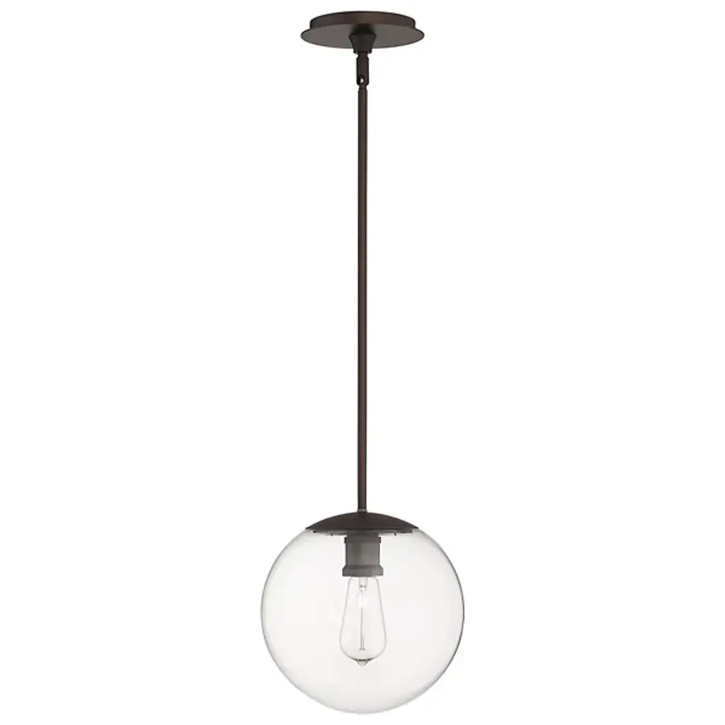 The Abraham Mini Pendant by Alder & Ore is a simply composed yet striking addition to rooms. Supported by a single stem, a spherical glass shade is paired with a minimally styled, stacked metal top for a clean, tailored look. Within, a visible bulb shines and offers plenty of light to surroundings, and the metal top is completed with a lovely finish to lend a bright and beautiful touch to the space it is in.