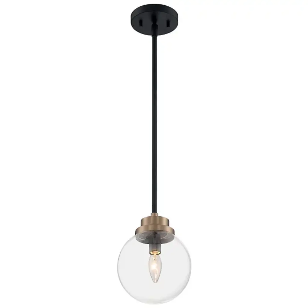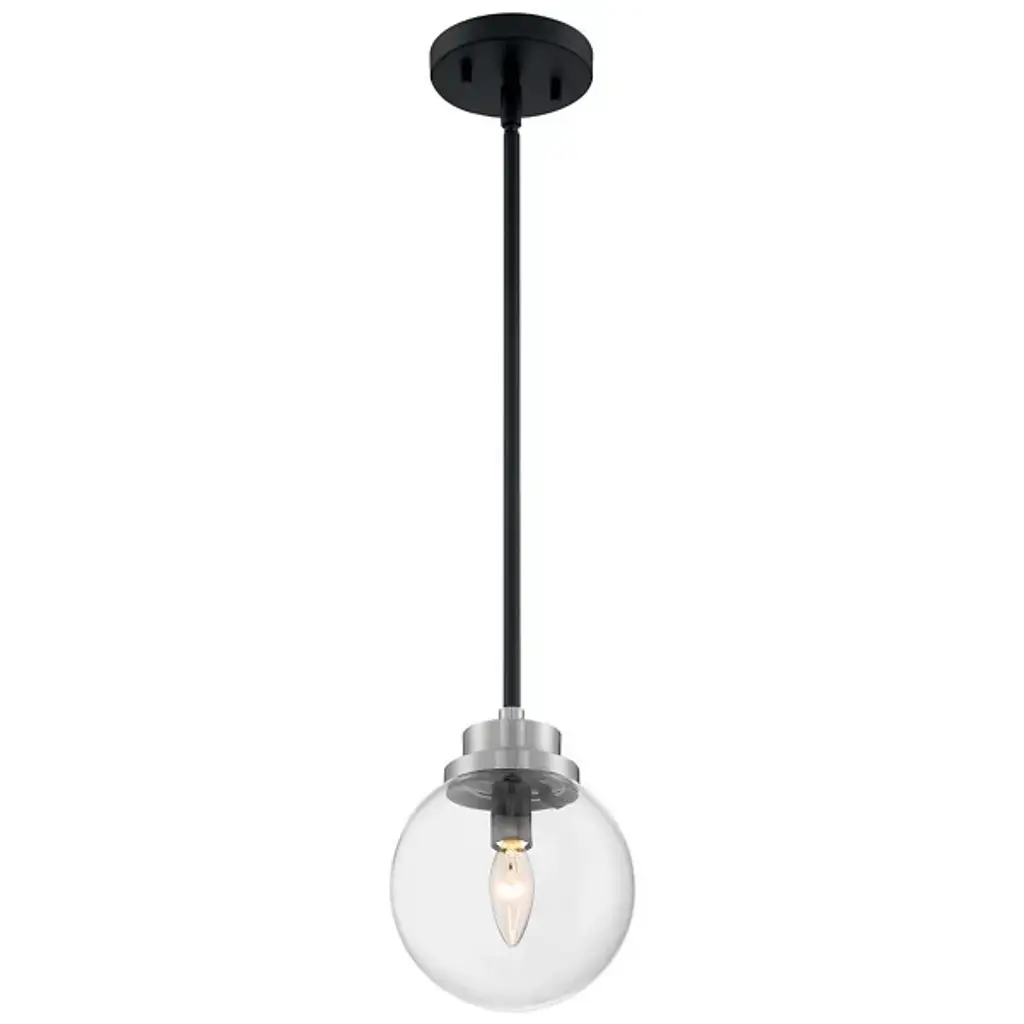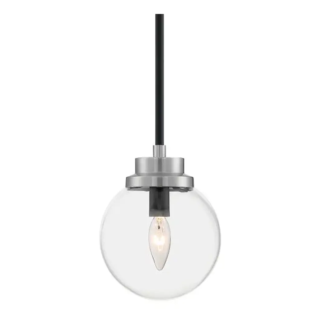 The Abraham Mini Pendant by Alder & Ore is a simply composed yet striking addition to rooms. Supported by a single stem, a spherical glass shade is paired with a minimally styled, stacked metal top for a clean, tailored look. Within, a visible bulb shines and offers plenty of light to surroundings, and the metal top is completed with a lovely finish to lend a bright and beautiful touch to the space it is in.