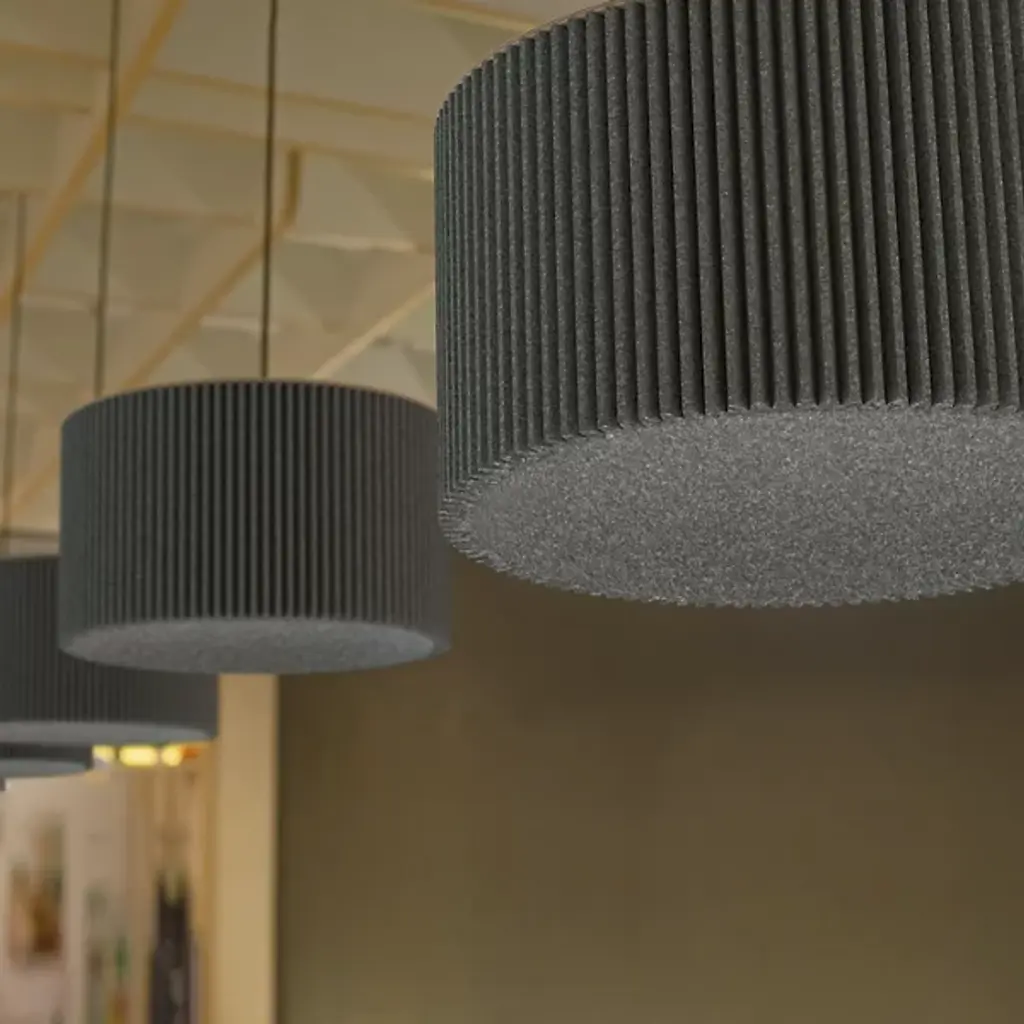 The Absorber Pendant is an attractive, multi-functional lighting solution presented by Seascape Lamps. The piece is crafted from a recycled acoustic material that helps absorb sound for a calm ambiance. Beneficial for large spaces, this is a high-design pendant lamp made of environmentally friendly recycled PET Ecopanel. A pleated exterior to the shade’s perimeter adds to the soft light’s visual decadence.