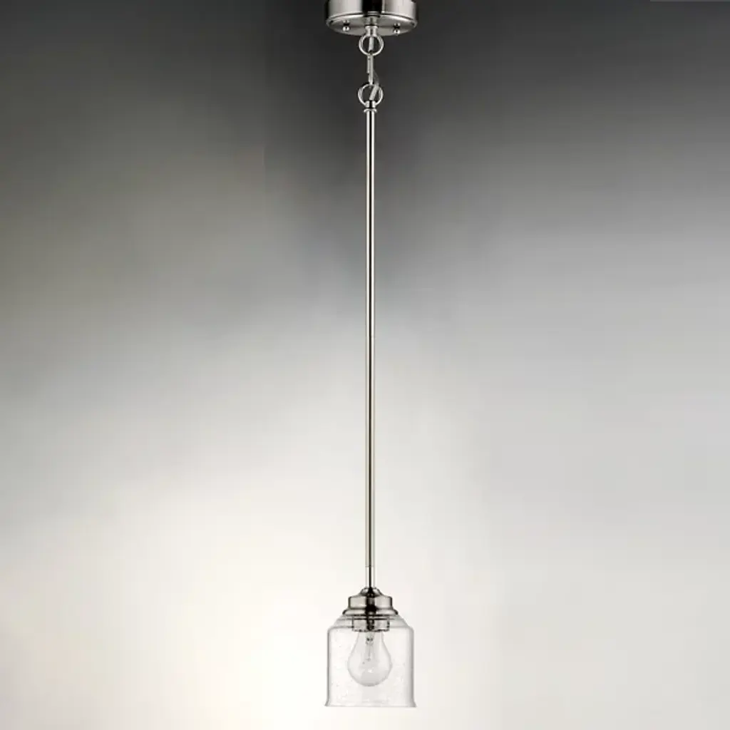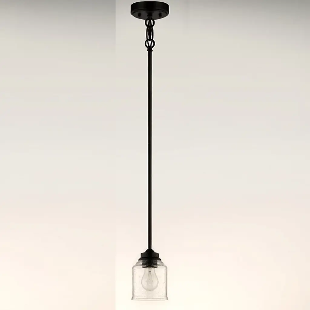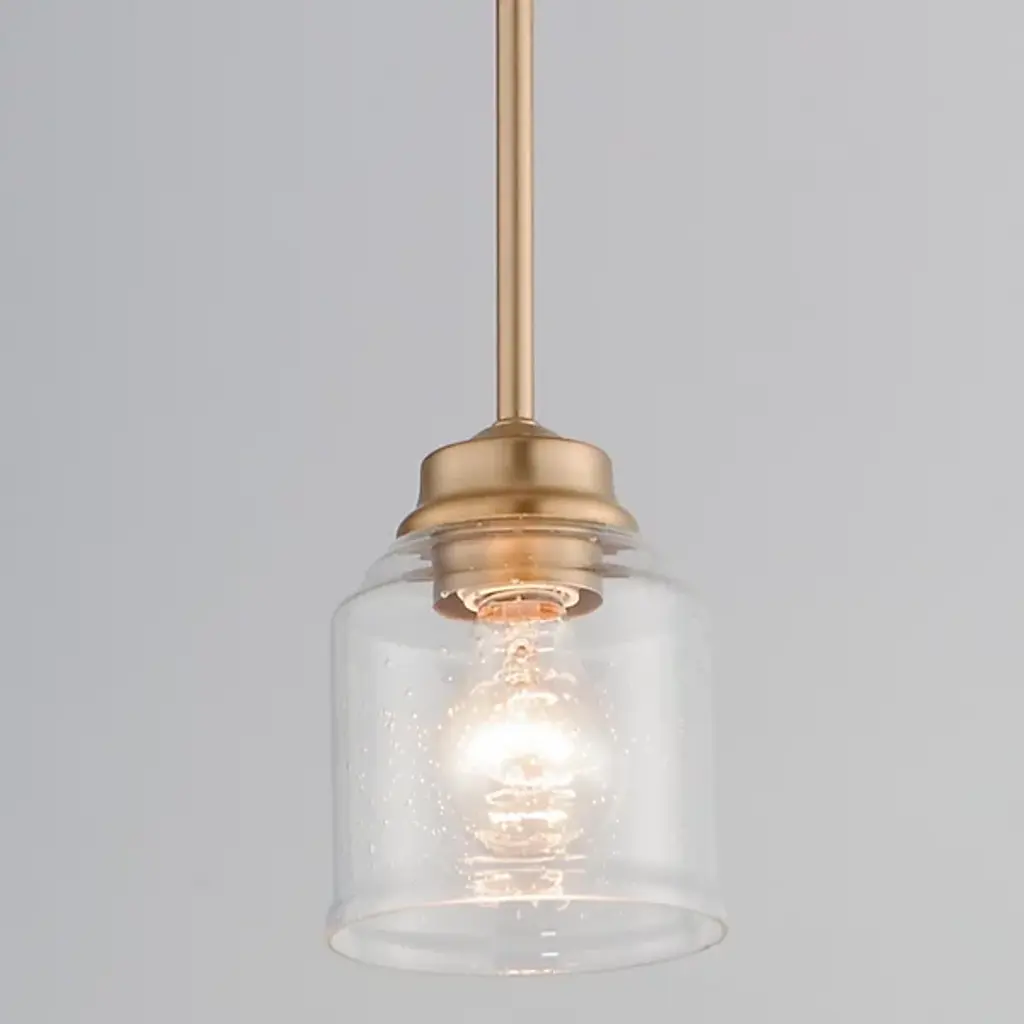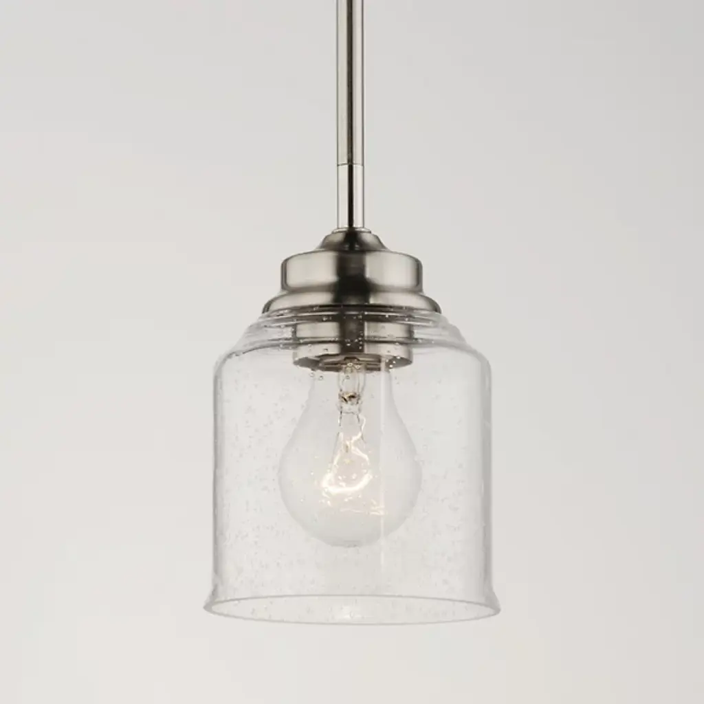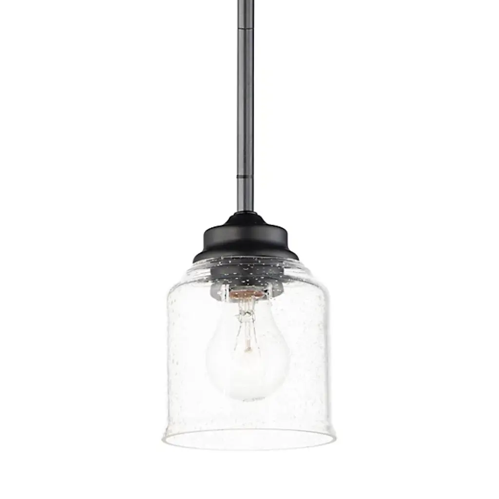 Mini but mighty. The Acadia Mini Pendant from Maxim Lighting packs a punch in the styling and ambiance department. It’s a transitional design that tells of your room’s sophisticated aesthetic. Combined with its slender silhouette, this transitional design proves versatile, serving as a great addition to the bedroom or as a series over a table. As it hangs in the air, the eyes quickly gravitate to the beautifully contoured and textured clear seedy glass shade. The bulb’s warm shine brings a warm ambient glow while leaving behind a curious display of ultra-fine highlights on the seedy details.
