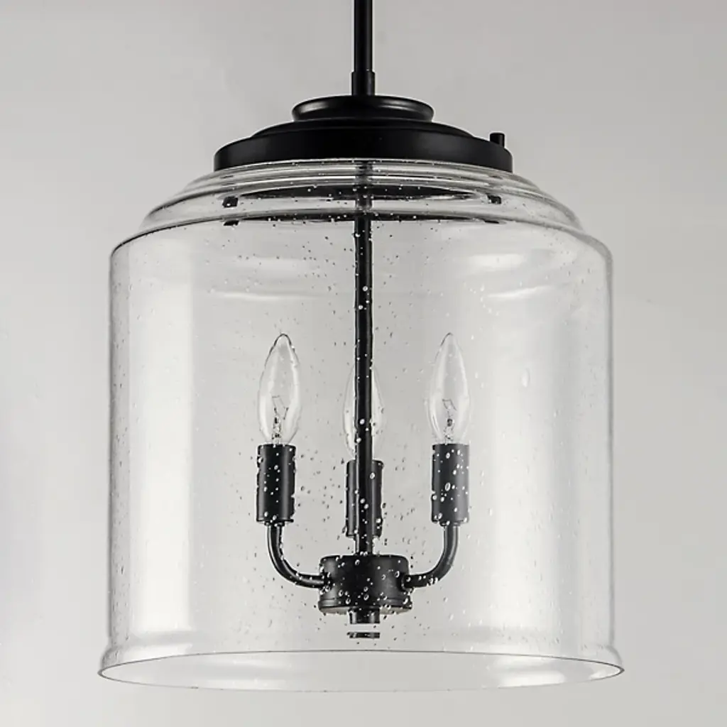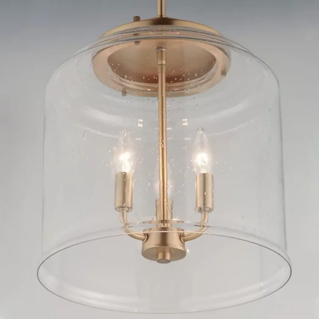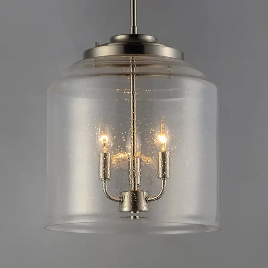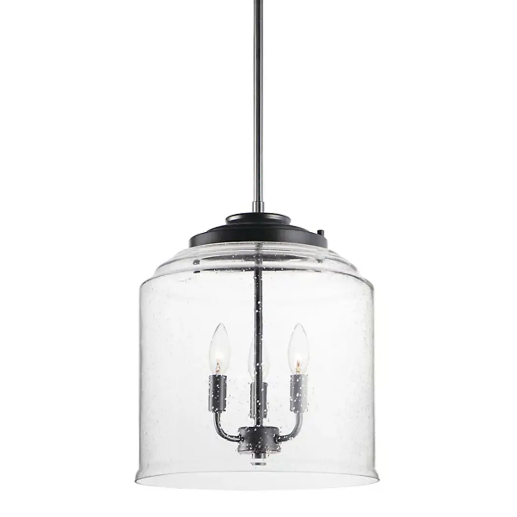 The Acadia Pendant by Maxim Lighting has a clean, simple, and contemporary look that complements a wide range of spaces and décor styles. A single downrod attaches to a round canopy, accented with a short set of loops that add a dynamic touch to the minimalistic silhouette of this pendant. A seedy glass shade is set around an arrangement of candelabras, creating a lovely space for light to filter through as this cylindrical shade shapes a layer of unobstructed illumination downwards.