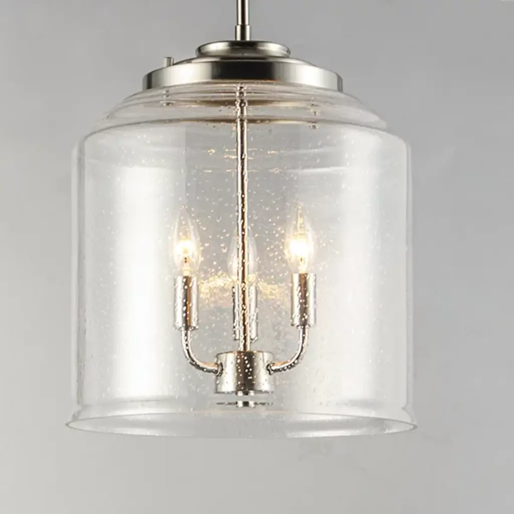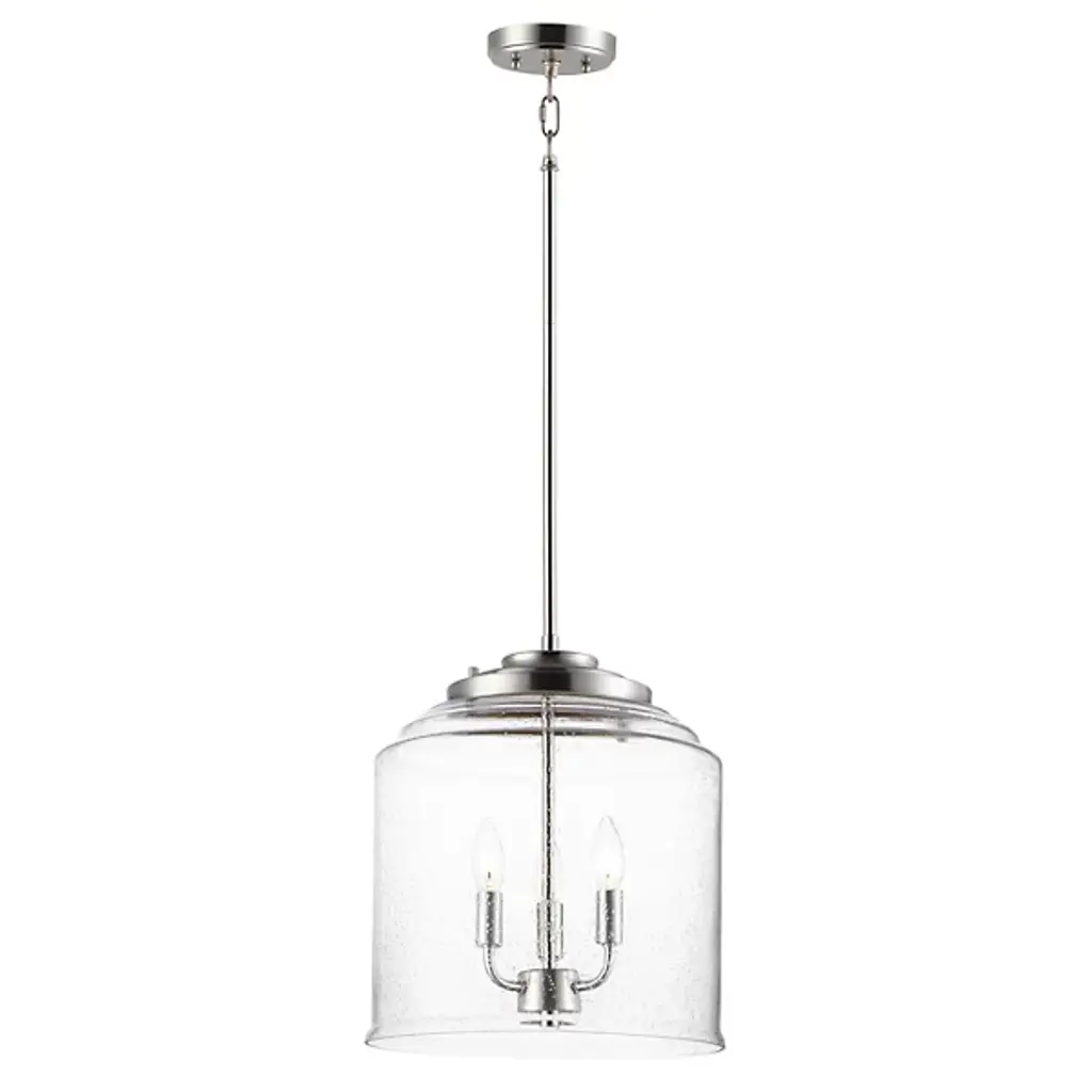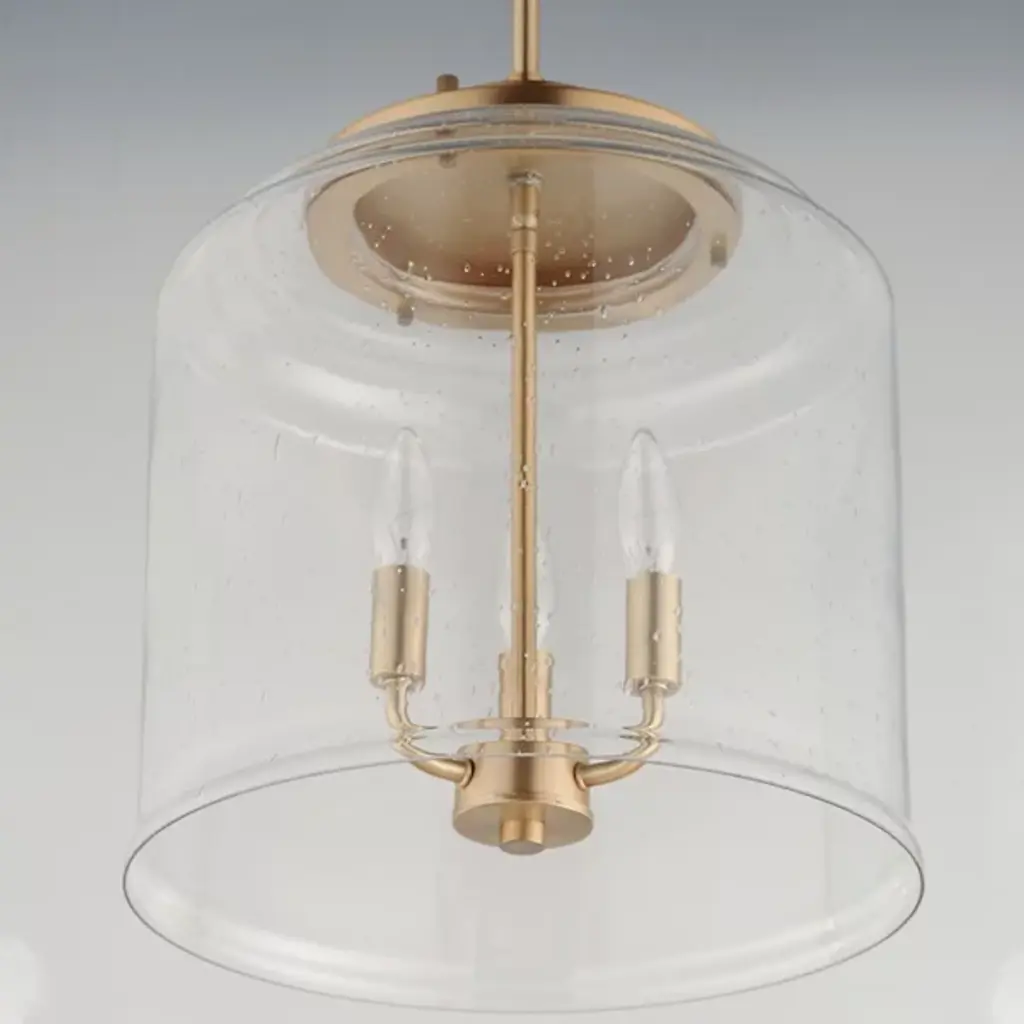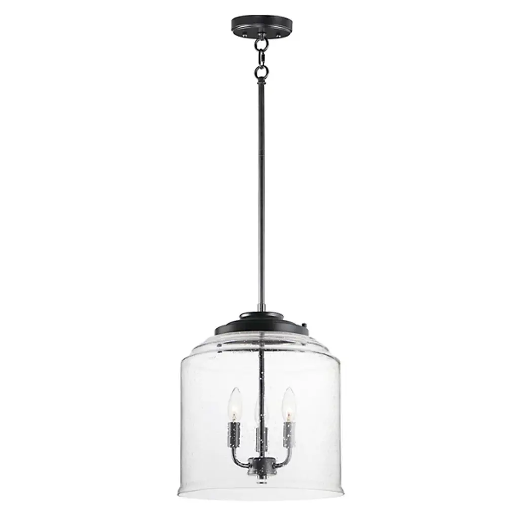 The Acadia Pendant by Maxim Lighting has a clean, simple, and contemporary look that complements a wide range of spaces and décor styles. A single downrod attaches to a round canopy, accented with a short set of loops that add a dynamic touch to the minimalistic silhouette of this pendant. A seedy glass shade is set around an arrangement of candelabras, creating a lovely space for light to filter through as this cylindrical shade shapes a layer of unobstructed illumination downwards.