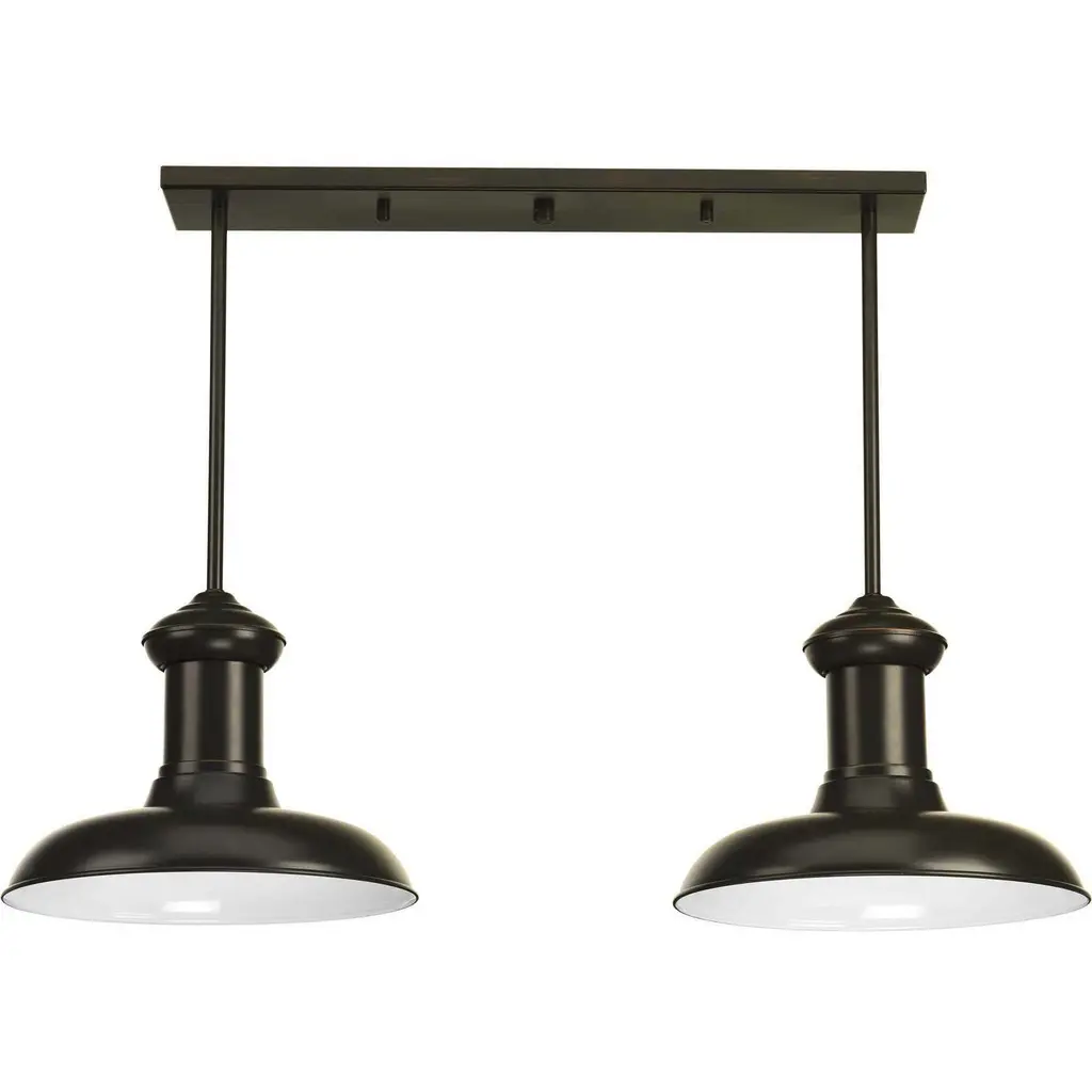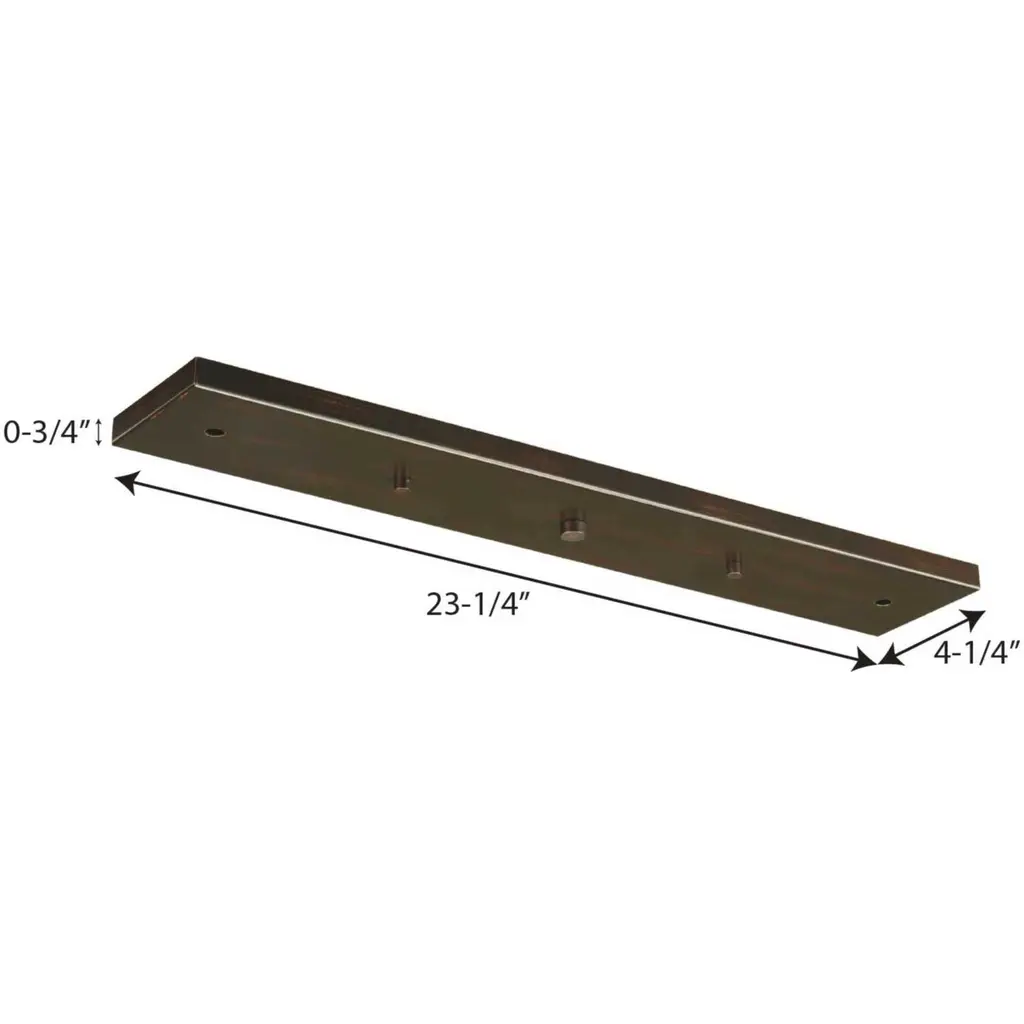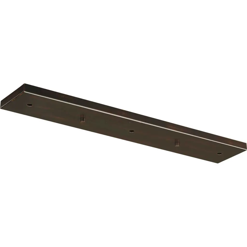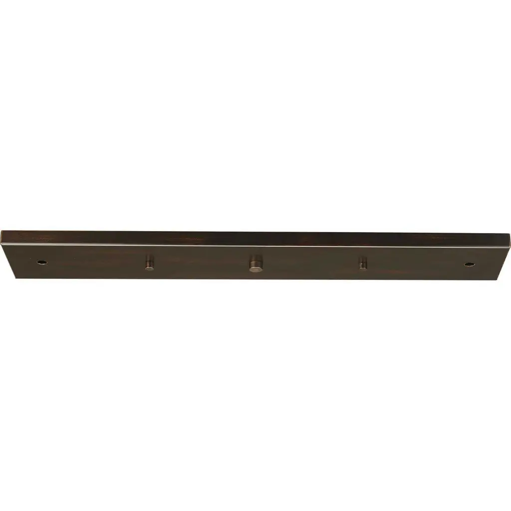 This linear pendant accessory allows for the hanging of 2 or 3 pendants off of one outlet box. Pendants can be mounted staggered or in line. The maximum pendant width for three pendants is 9 inch each. The maximum pendant width for two pendants is 18 inch each. Antique Bronze finish.
