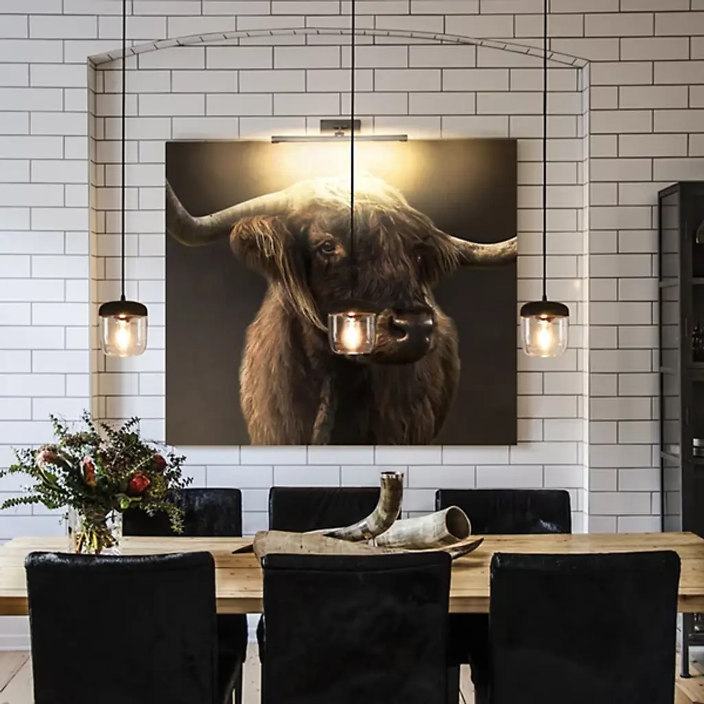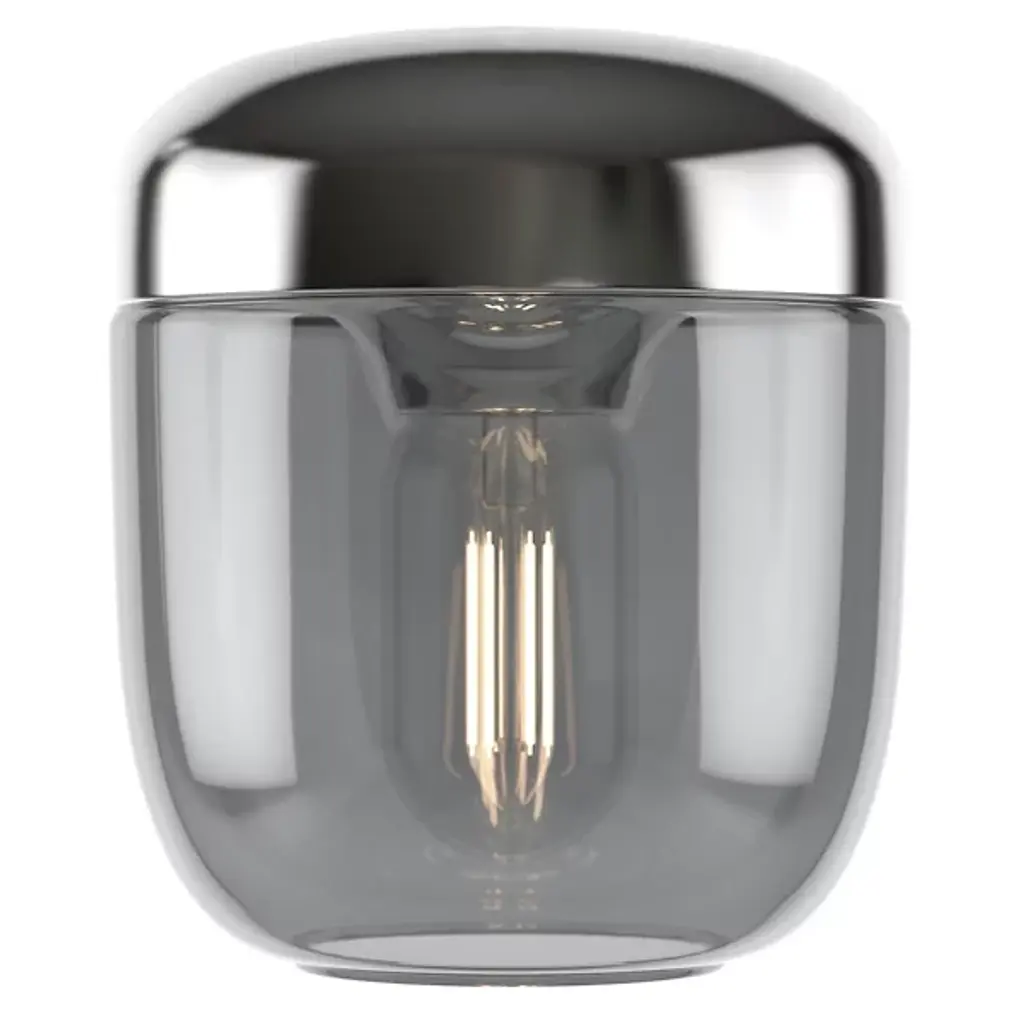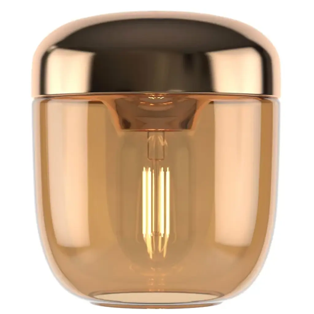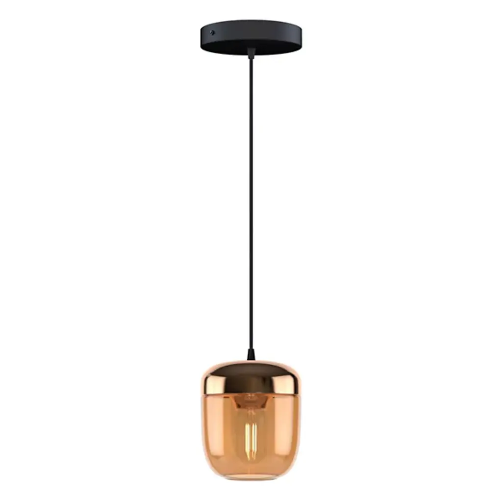 The Acorn Pendant from UMAGE expresses the natural inspiration of its namesake, giving brilliant glitter and a stylized, sculptural presence to its surroundings. A circular canopy and slender stem descend to a rounded socket housing that holds a unique filament-style lamp that lends an inspired retro presence to its surroundings. The bowl-shaped diffuser shade cuts glare, transforming it into a warm glow that washes out around the fixture while leaving the intriguing light element on display.